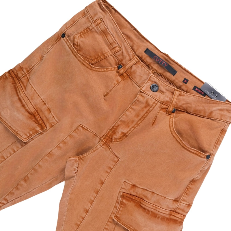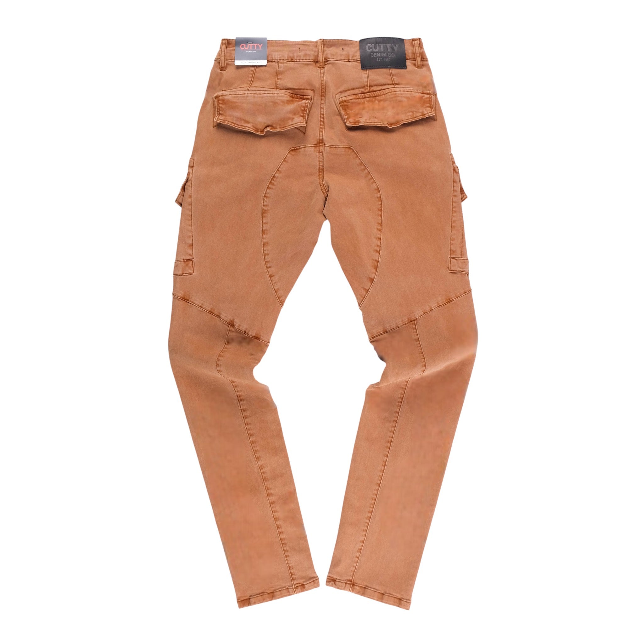 The Cutty Denim Co Rain Skinny Jeans deliver a bold street utility look with oversized cargo pockets and striking stitched panel details. Their rich washed copper tone and sharp skinny fit create a standout style made for everyday movement.