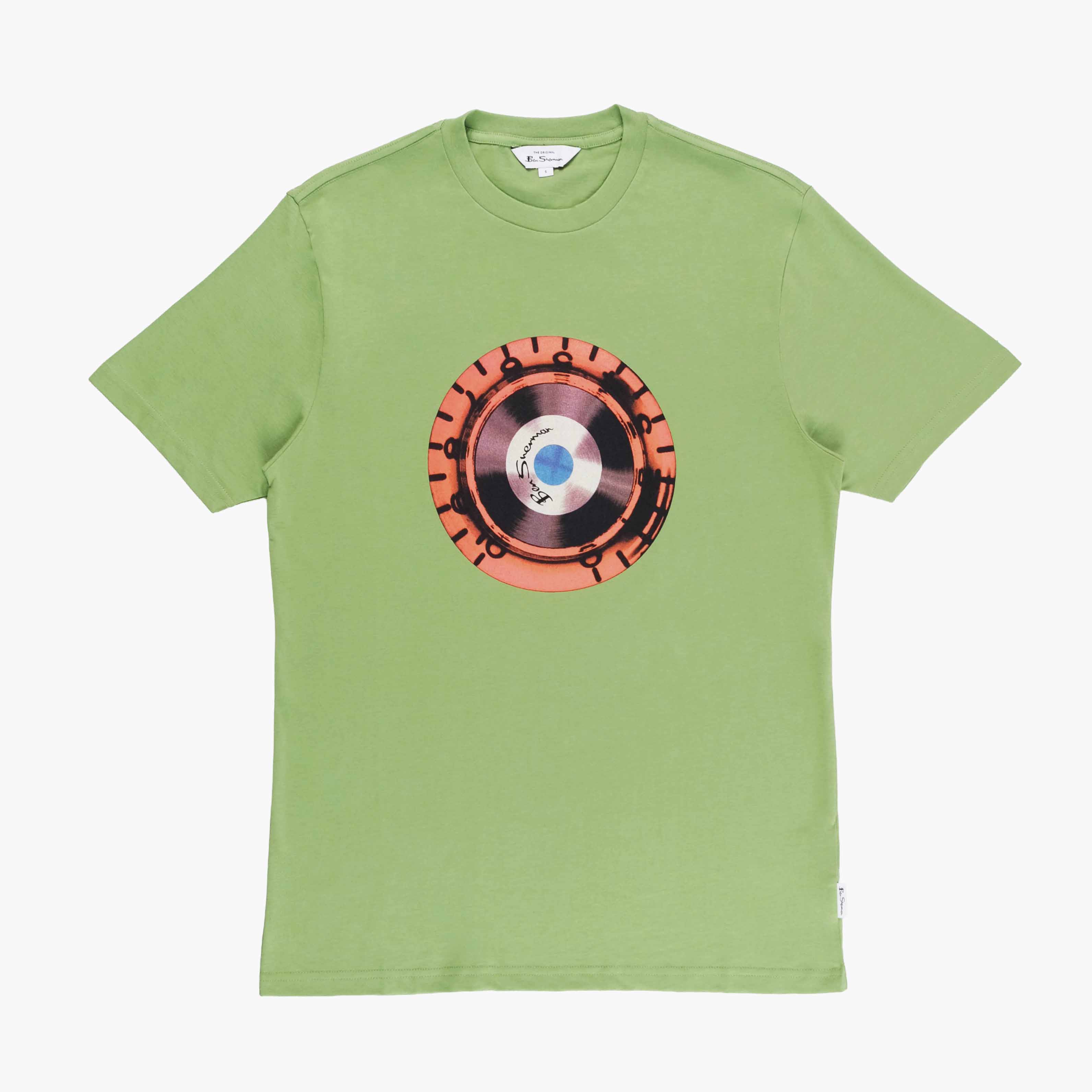 The Ben Sherman Turn It Up Crew T-Shirt features a vibrant green base with a bold vinyl record graphic at the chest. Made from soft cotton this tee delivers a retro music inspired look with everyday comfort.