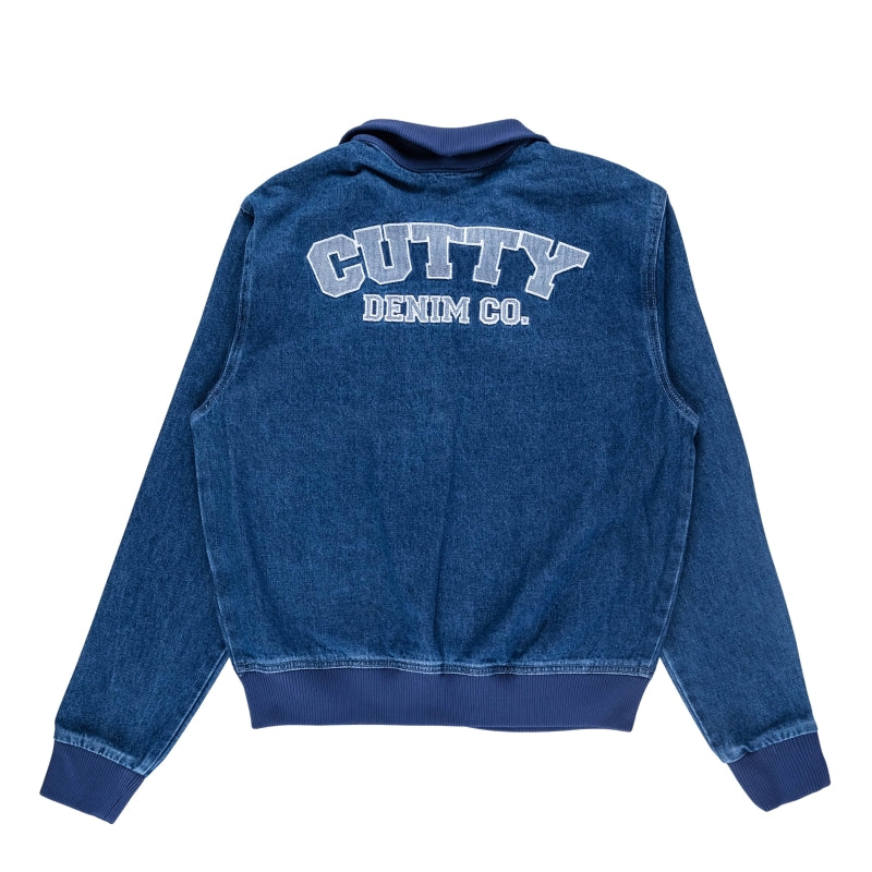 The Cutty Denim Co Snead Jacket delivers a modern varsity feel with premium denim and bold brand detailing. Ribbed collar cuffs and hem add comfort while the zip through design keeps it easy and versatile. Finished with statement embroidery front and back for confident everyday style.