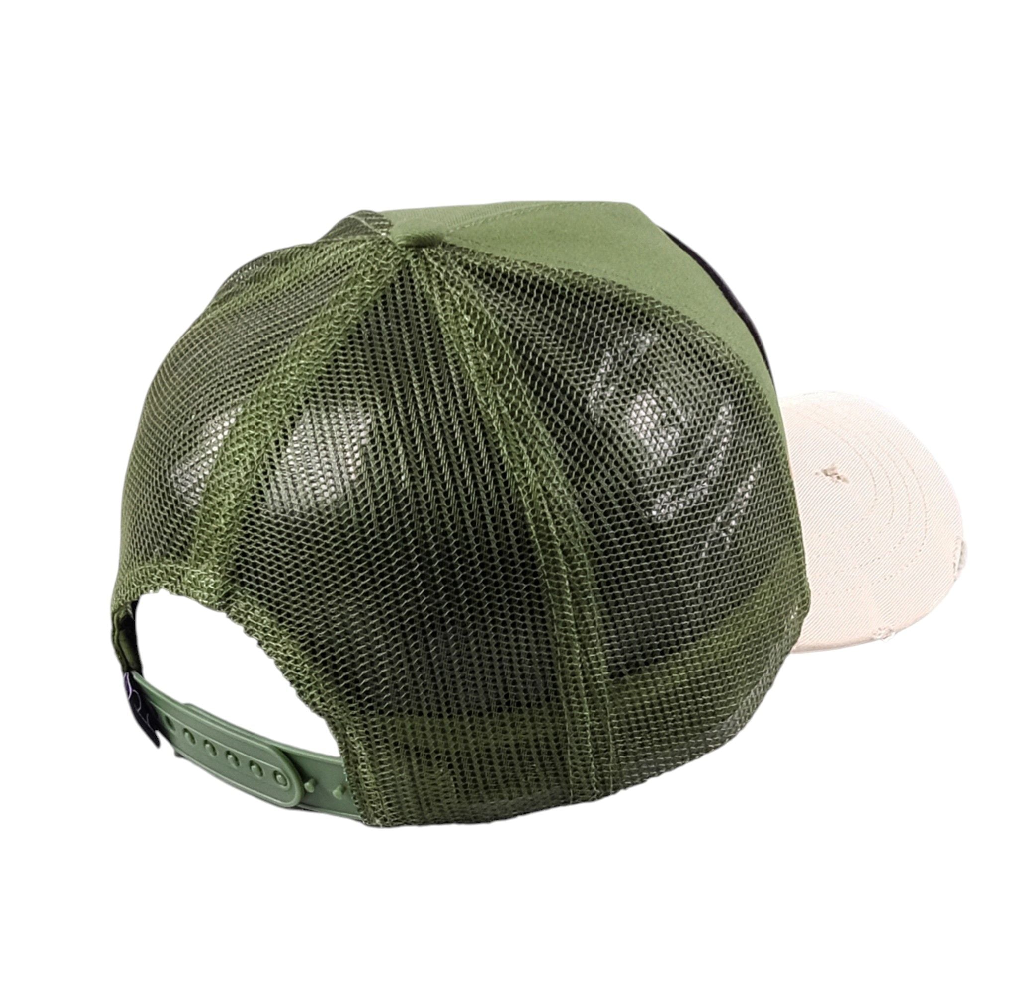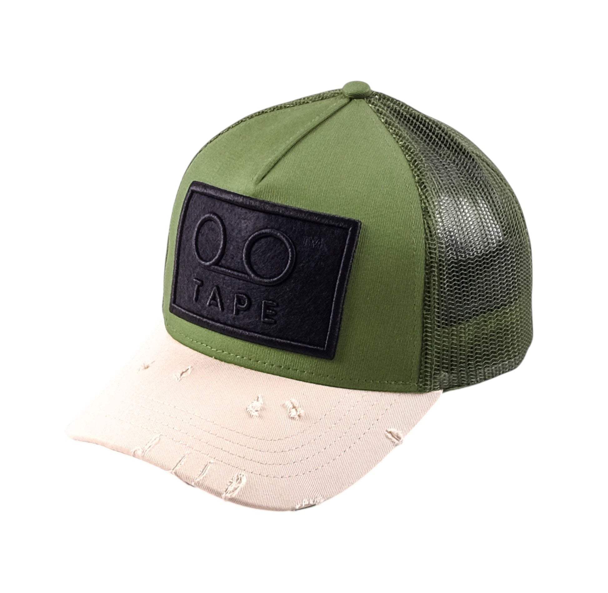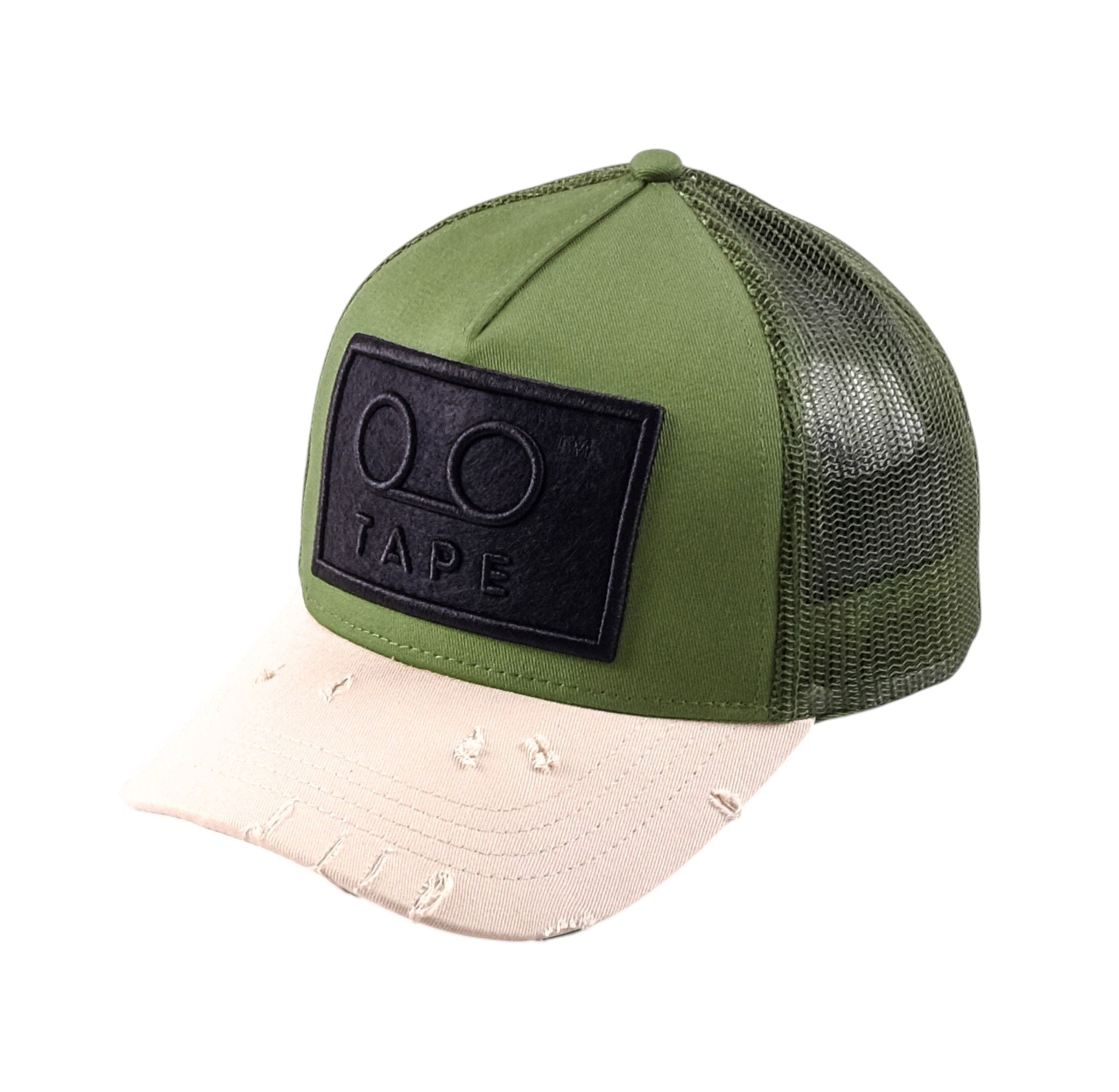 Step up your street game with the Tape LF Trucker Hat in fresh olive and cream tones. A bold front logo patch makes a confident statement while breathable mesh panels keep you cool all day. The curved peak and adjustable snapback deliver a comfortable fit with laid back attitude.
