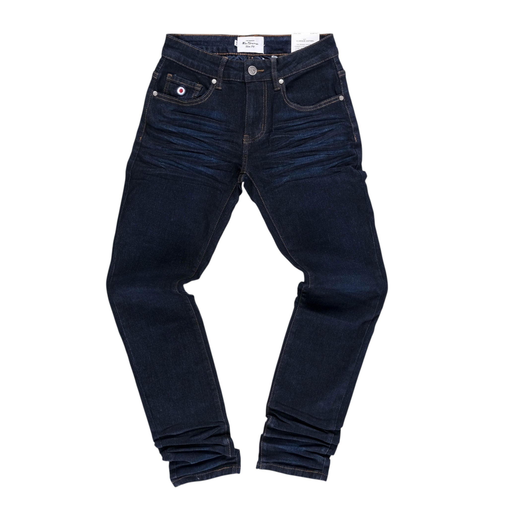 Upgrade your denim rotation with the Ben Sherman Garment Coated Slim Jeans designed in a deep indigo wash with subtle worn detailing. The slim fit cut delivers a clean modern silhouette while contrast stitching and signature branding add refined edge.