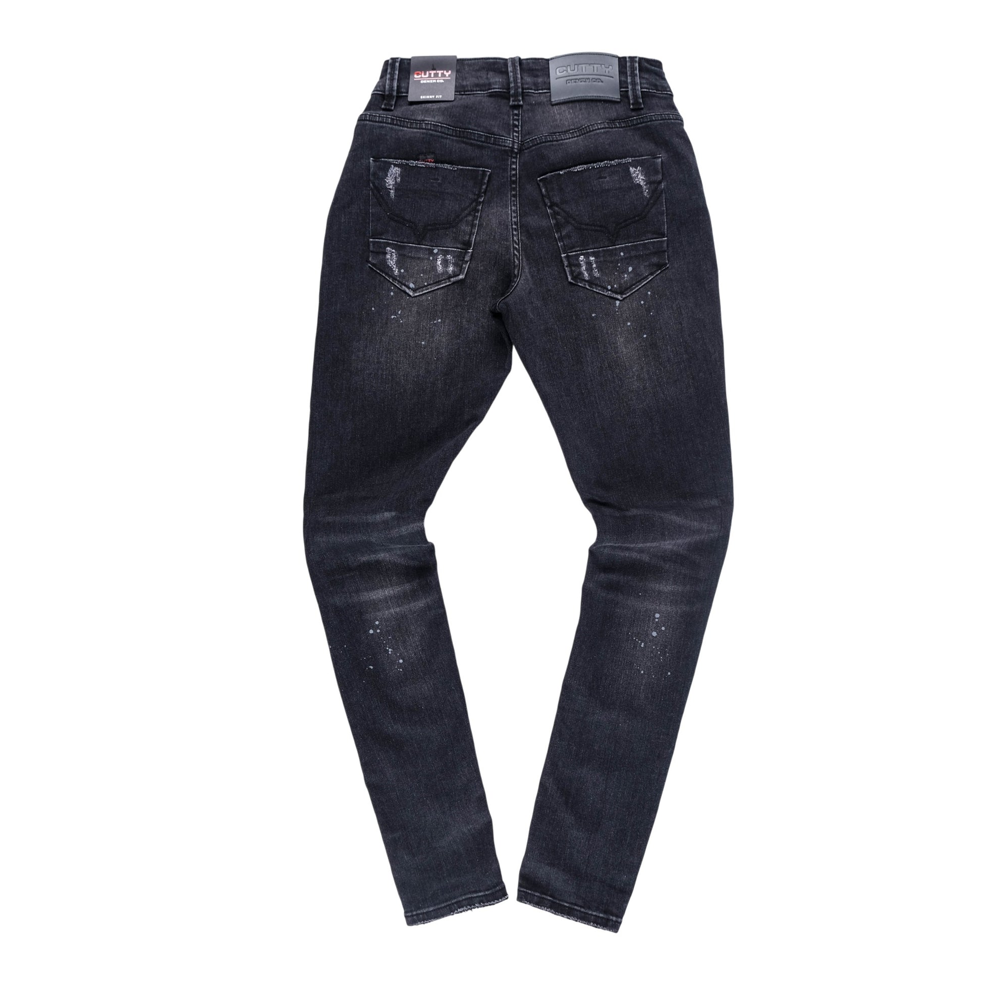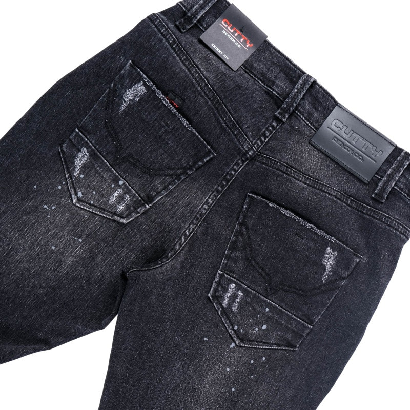 By Cutty Denim CoThe Cutty Denim Co Simon Skinny Jeans make a bold statement with a dark wash distressed detailing and paint splatter accents. Designed in a skinny fit with stretch denim for comfort and easy movement. Finished with signature Cutty branding for a confident street ready look.