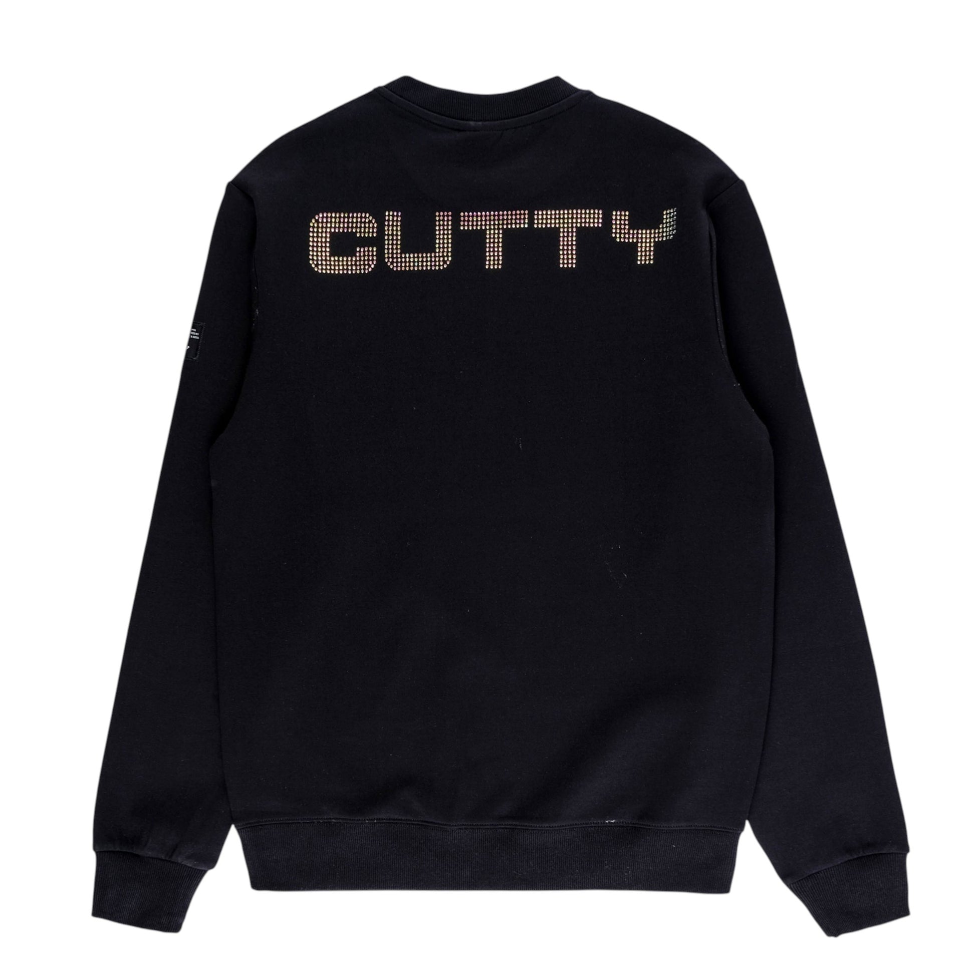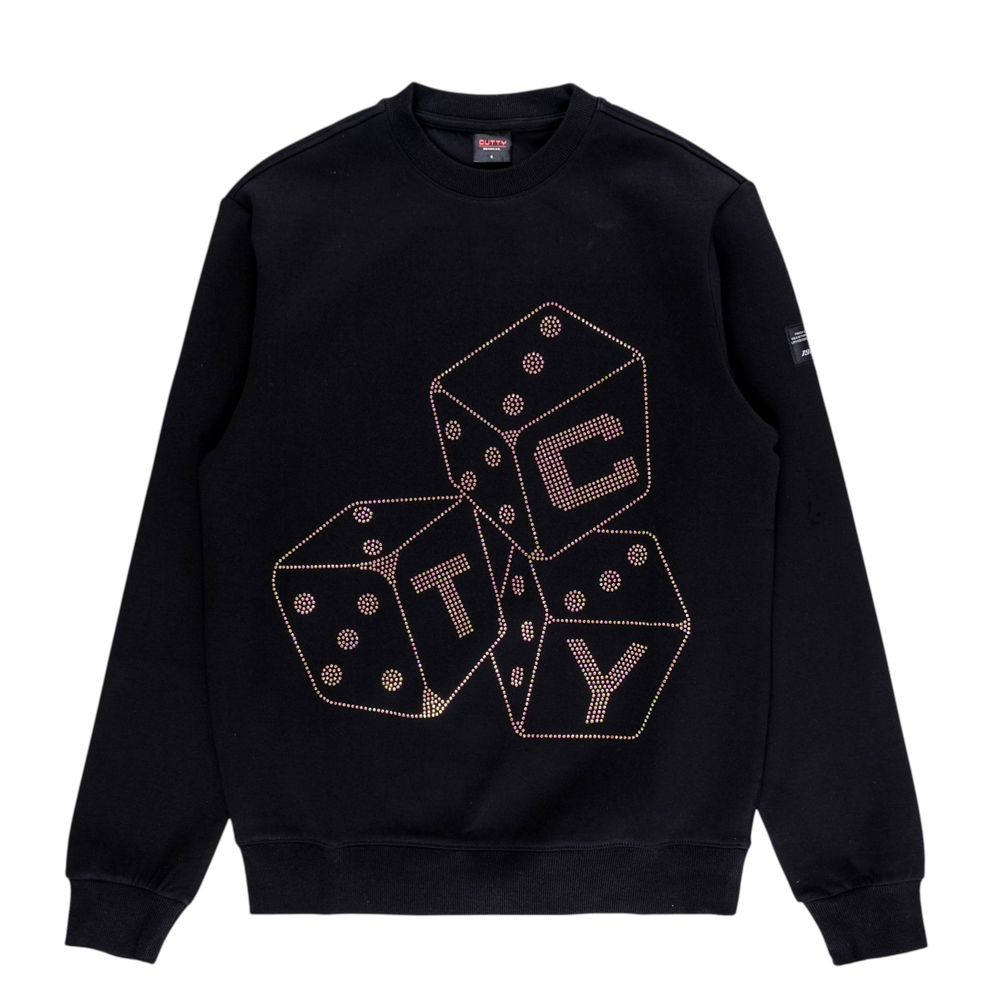 By Cutty Denim CoTurn up the shine with the Cutty Denim Co Hawkins Crew Sweater designed in classic black with bold dice inspired graphic detail. The statement front artwork and shimmering Cutty branding at the back bring standout street energy. Crafted for comfort and impact this crew is made to roll the style dice your way.