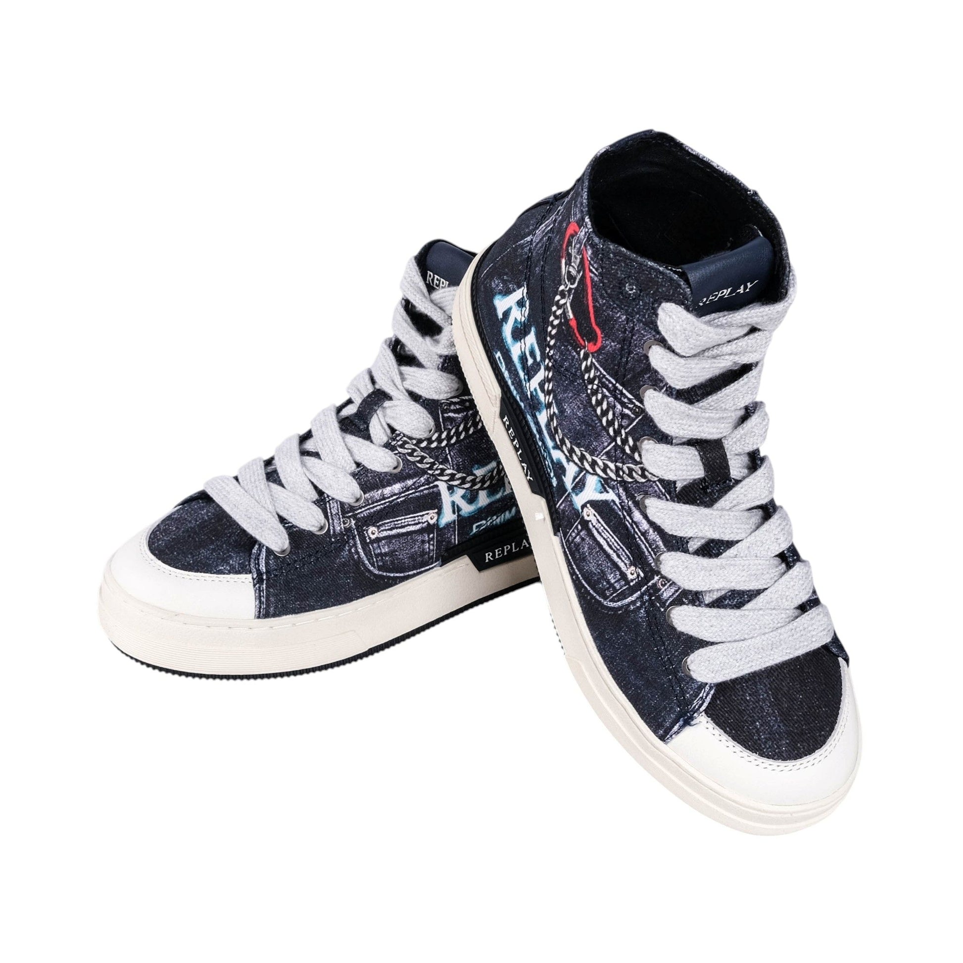 Replay Rally Denim Sneakers bring bold street style with a denim inspired graphic print and standout Replay branding. High top design adds support and urban edge. Durable sole delivers comfort and grip for everyday wear.