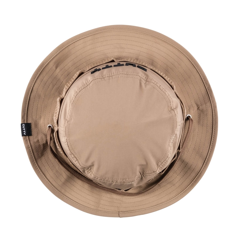 Stay ready for any adventure with the Cutty Denim Co Motion Bucket Hat in a clean sand tone. Featuring bold raised branding and a woven utility band this hat blends outdoor function with street appeal. Finished with breathable eyelets and an adjustable chin strap for a secure comfortable fit all day.
