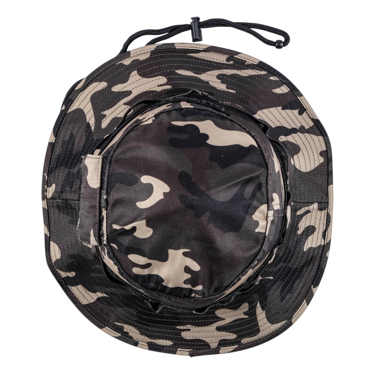 Stand out in every setting with the Cutty Denim Co Egan Bucket Hat in a bold camo print. Designed with a sleek tonal logo and a functional utility band this hat blends street attitude with outdoor edge. Finished with breathable eyelets and an adjustable chin strap for a secure comfortable fit wherever you move.