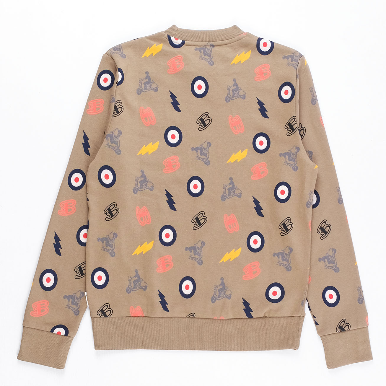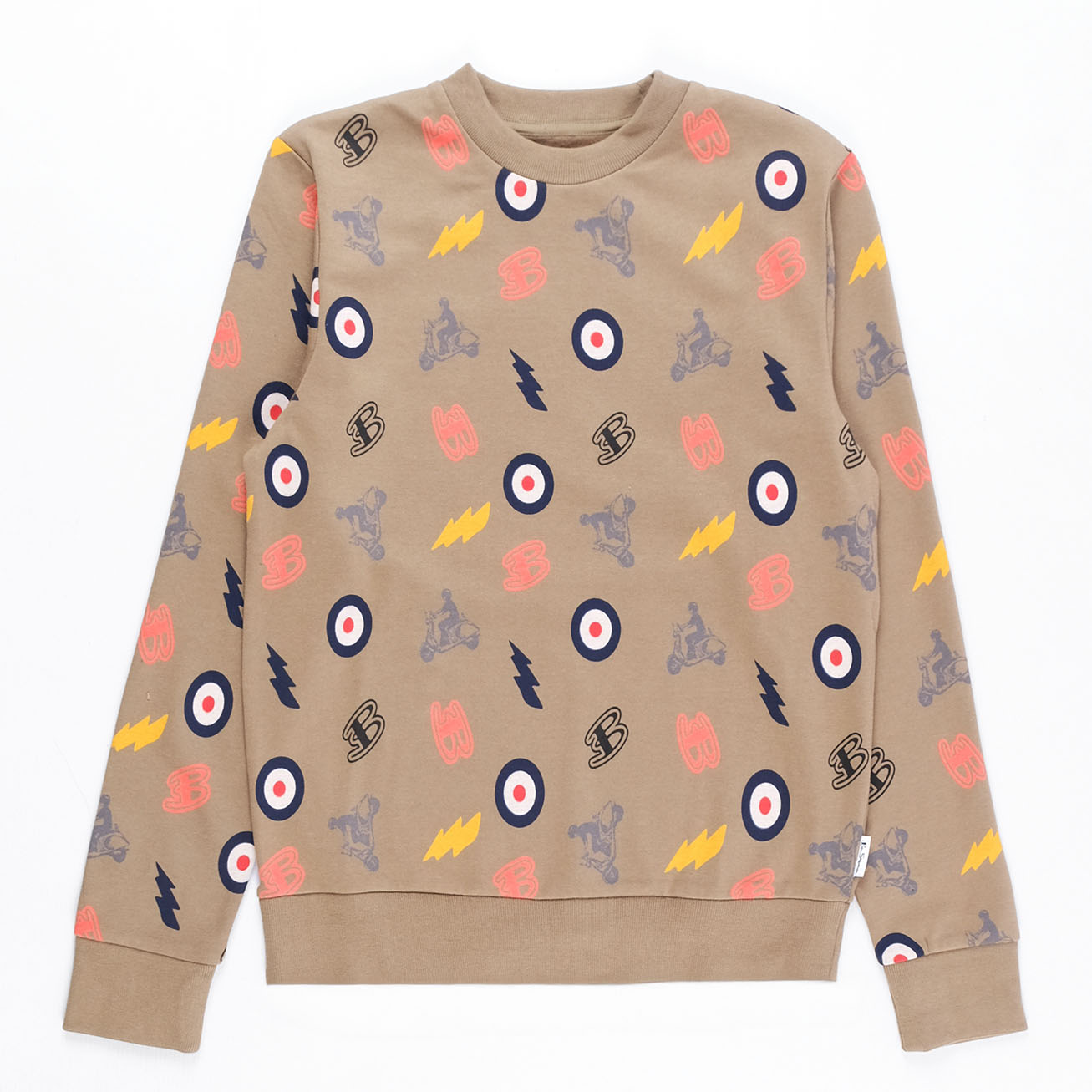 By Ben ShermanStep up your sweater game with the Ben Sherman AOP Sweatera bold statement in effortless style. Featuring a scattered pattern of signature Ben Sherman icons including the Target sign a bike a thunderbolt and the iconic 'B ' this sweater is a must-have for those who appreciate heritage with a modern edge.