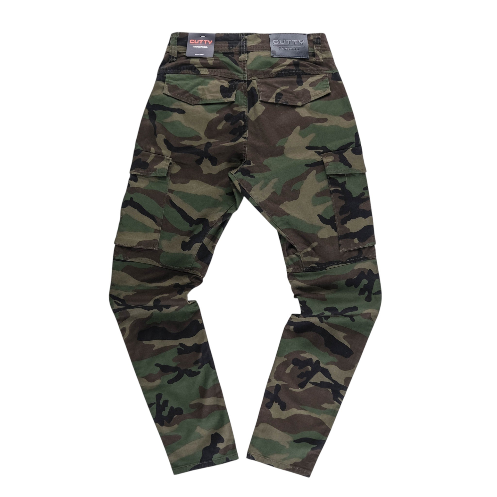 Cutty Denim Co Gemera Cargo Pants feature a bold camouflage design with a rugged street ready look. Multiple cargo pockets add utility and edge while the regular fit keeps the style comfortable for everyday wear.