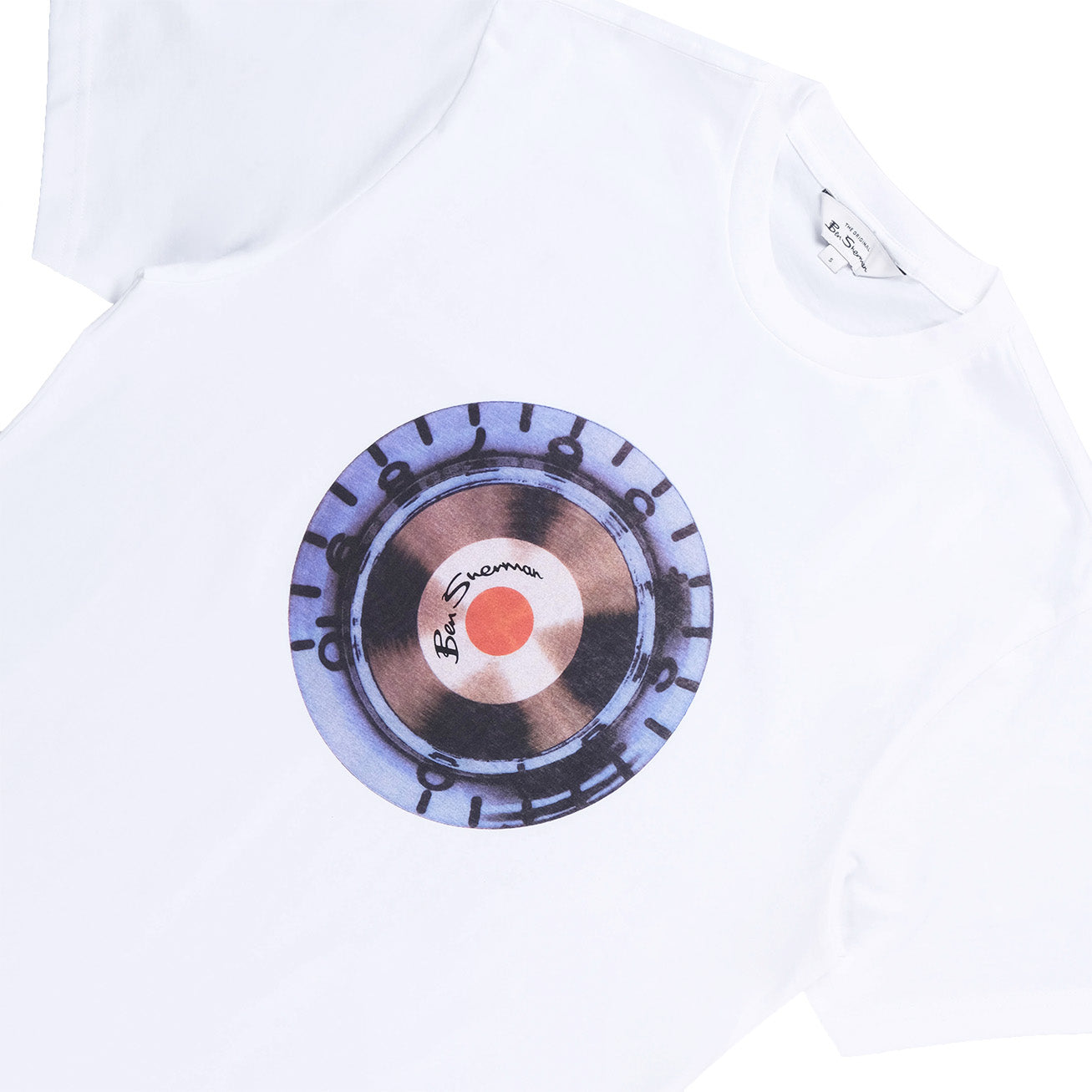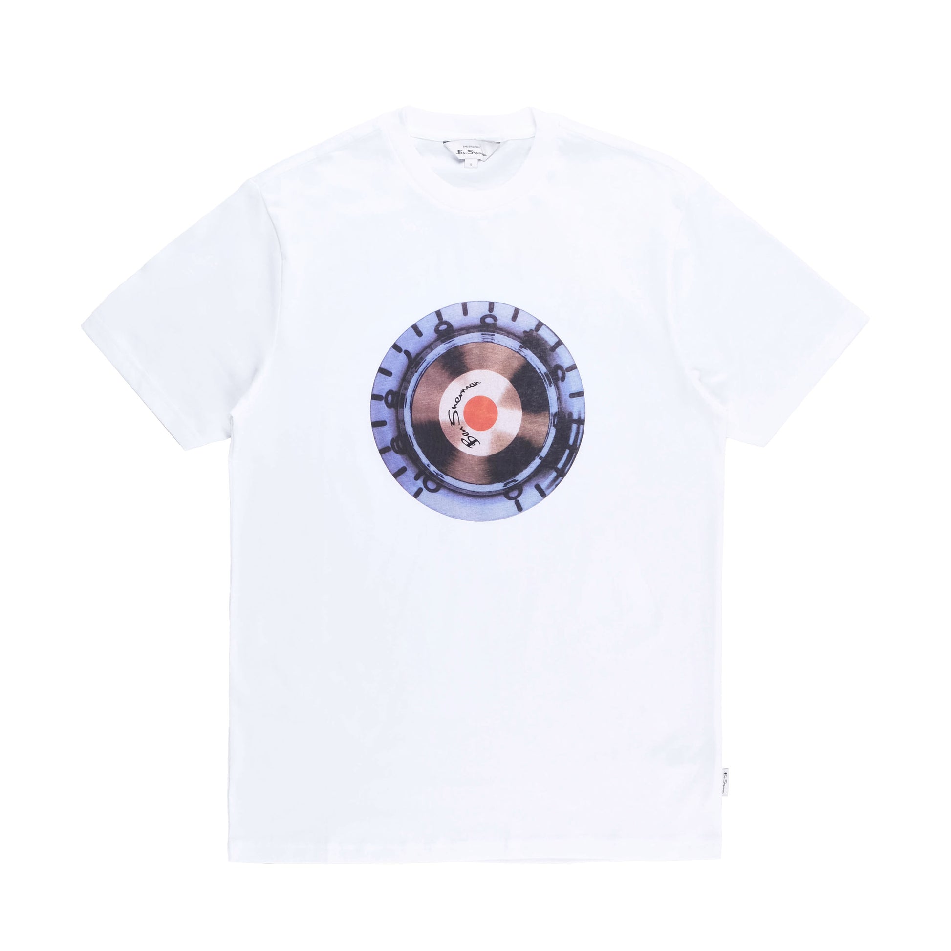 By Ben ShermanThe Ben Sherman Turn It Up Crew T-Shirt features a crisp white base with a bold record-inspired graphic at the chest. Its classic crew neck fit gives it a clean modern style with a retro music edge.