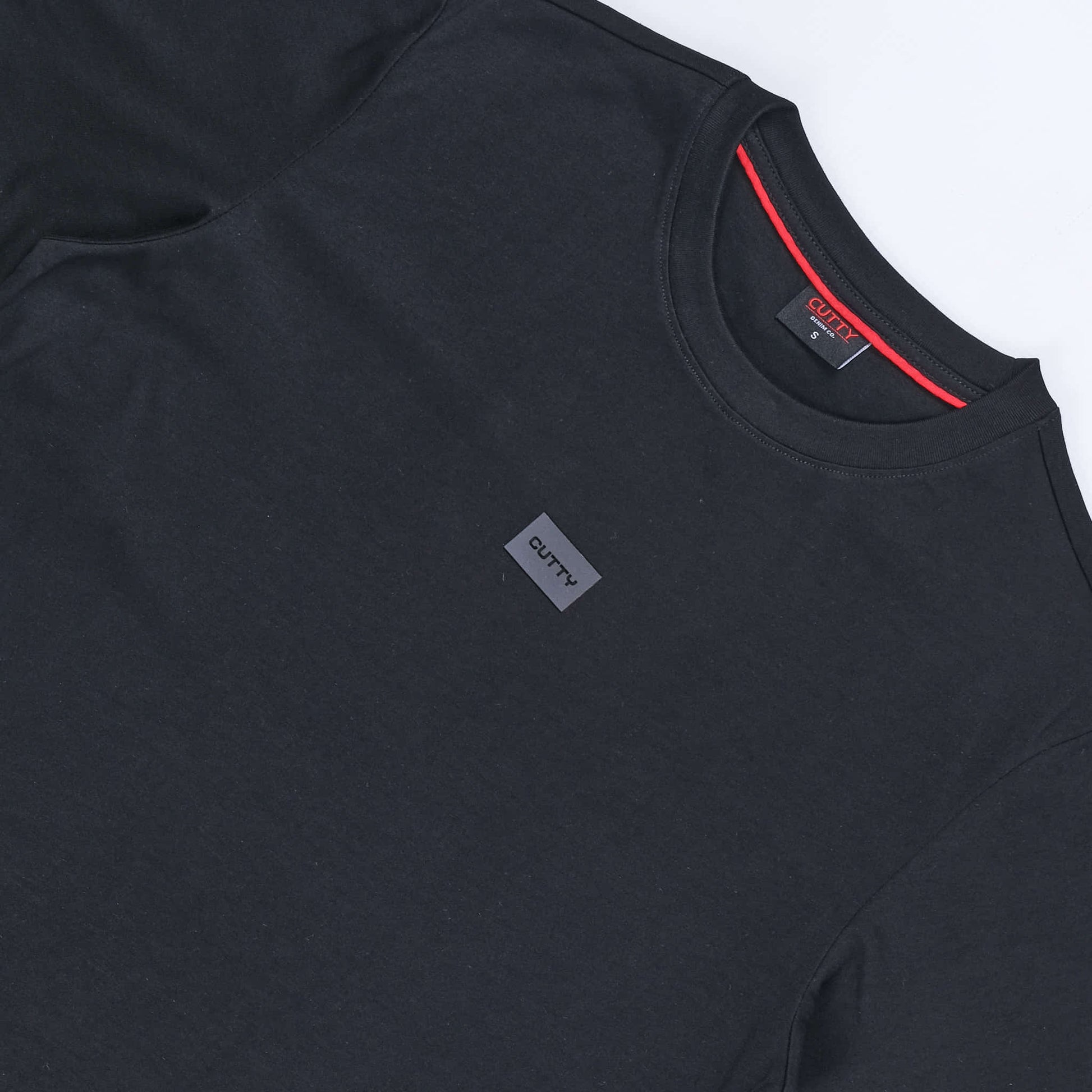 Miles T-Shirt (Black) featuring a sleek CUTTY tag on the chest. A minimal yet bold streetwear essential.