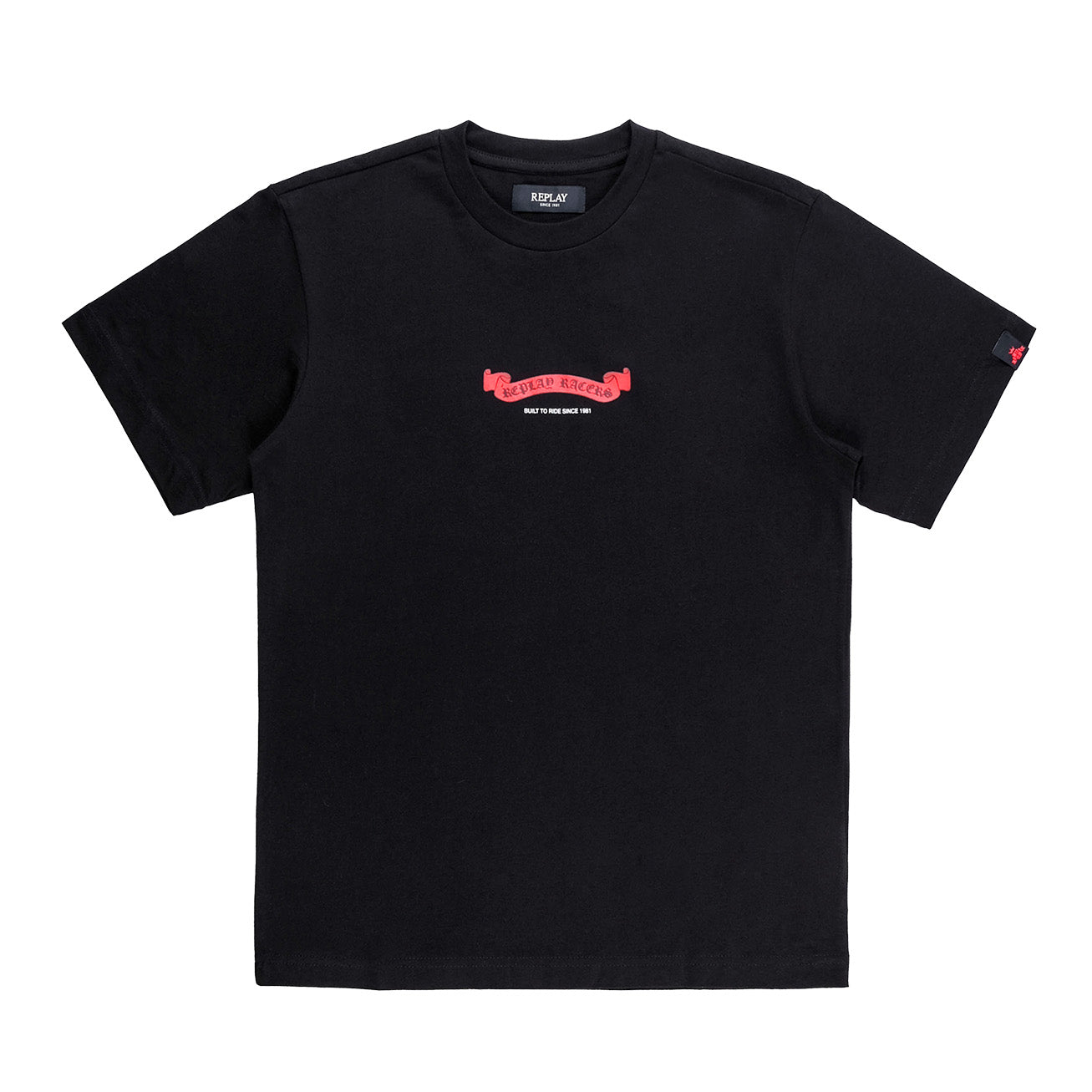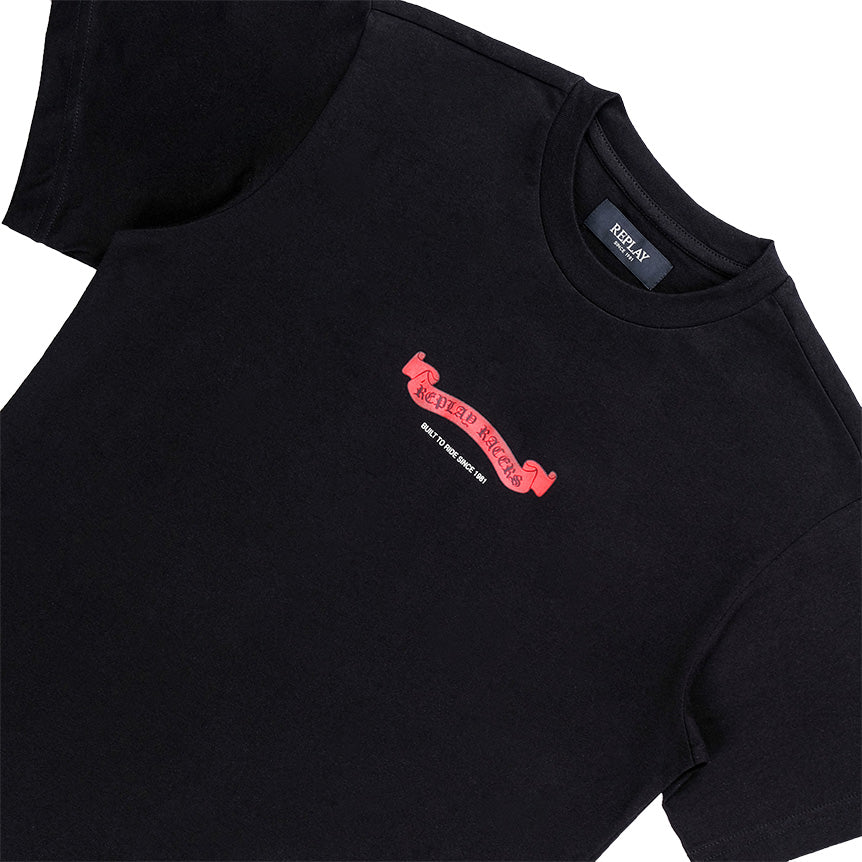 By ReplayThe Replay Collection Regular T-Shirt features a sleek black design with a bold red Replay Racers graphic across the chest. Made from soft cotton it delivers all day comfort with an authentic streetwear edge.