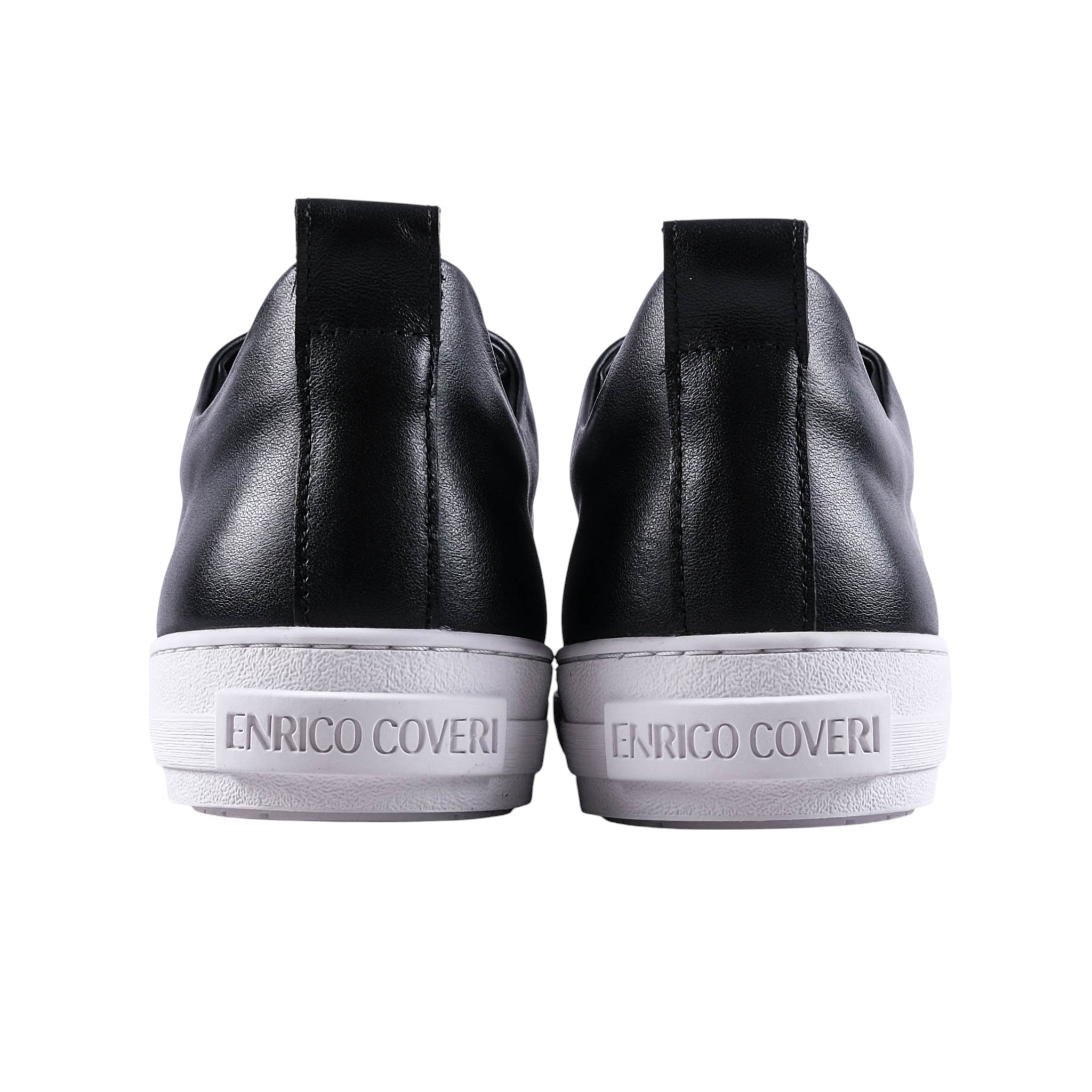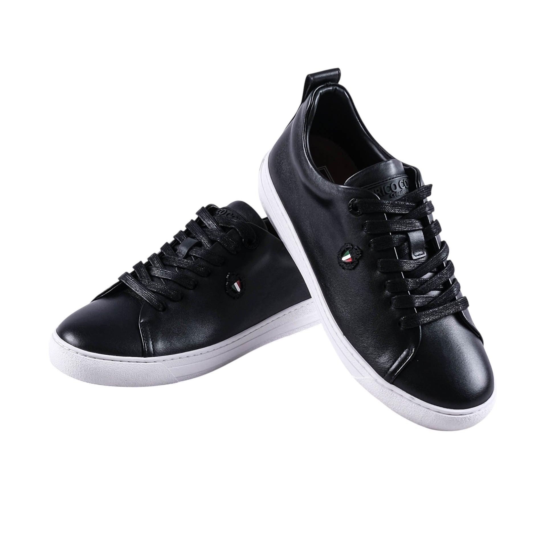 These sneakers blend a smooth black upper with a crisp white sole for a sharp modern look. A subtle crest detail adds character while cushioned interiors keep every step easy and comfortable.
