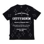 This Cutty Reece bold black tee features star shaped stud detailing and striking typography that commands attention. Made for fearless spirits it speaks to those who chase greatness and embrace every challenge with style.