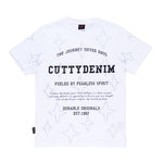 The Reece Crew T Shirt from Cutty Denim Co makes a bold statement with its star stud pattern and classic streetwear fit. Featuring fearless text graphics and Cutty branding this piece is made to stand out in any crowd.