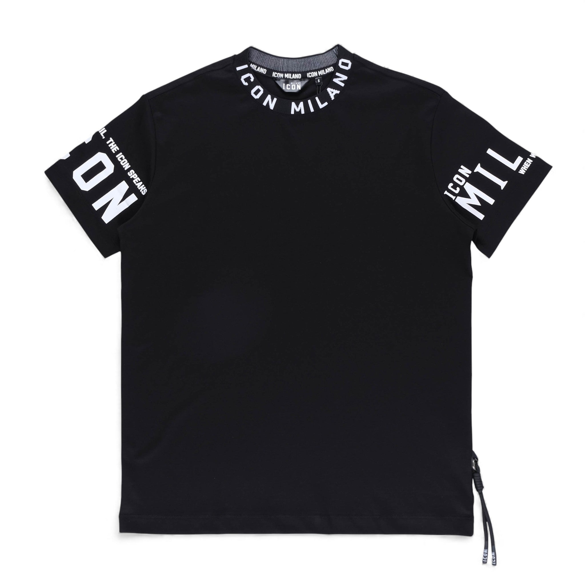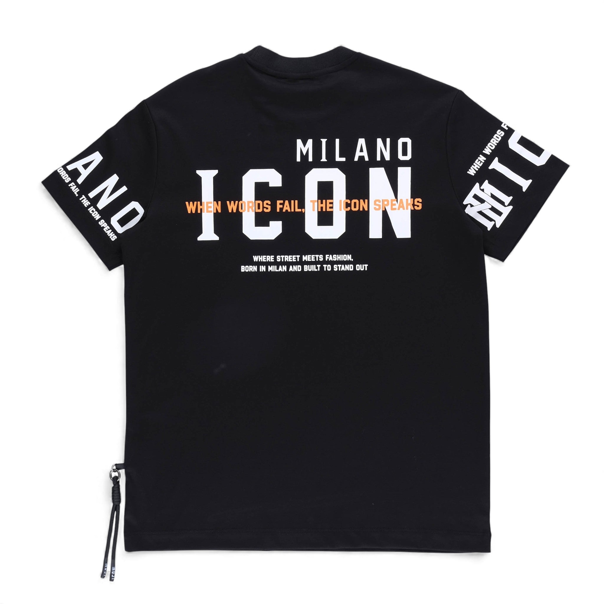 By Icon MilanoThis bold Icon Milano tee brings high energy with oversized back branding and strong sleeve details that elevate any street fit. The contrast text and modern crew design deliver a confident look made for standing out.