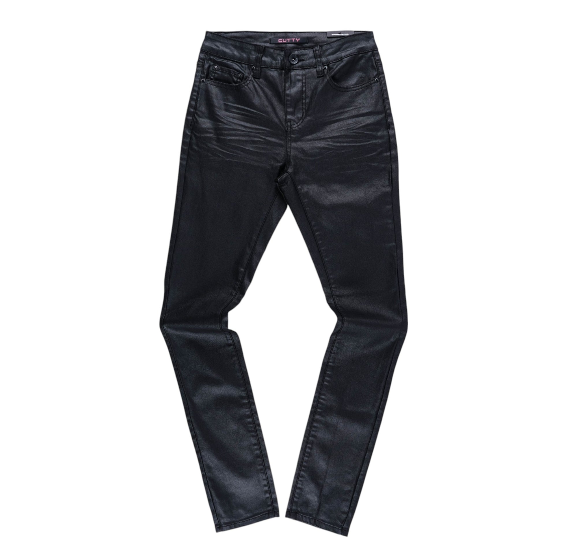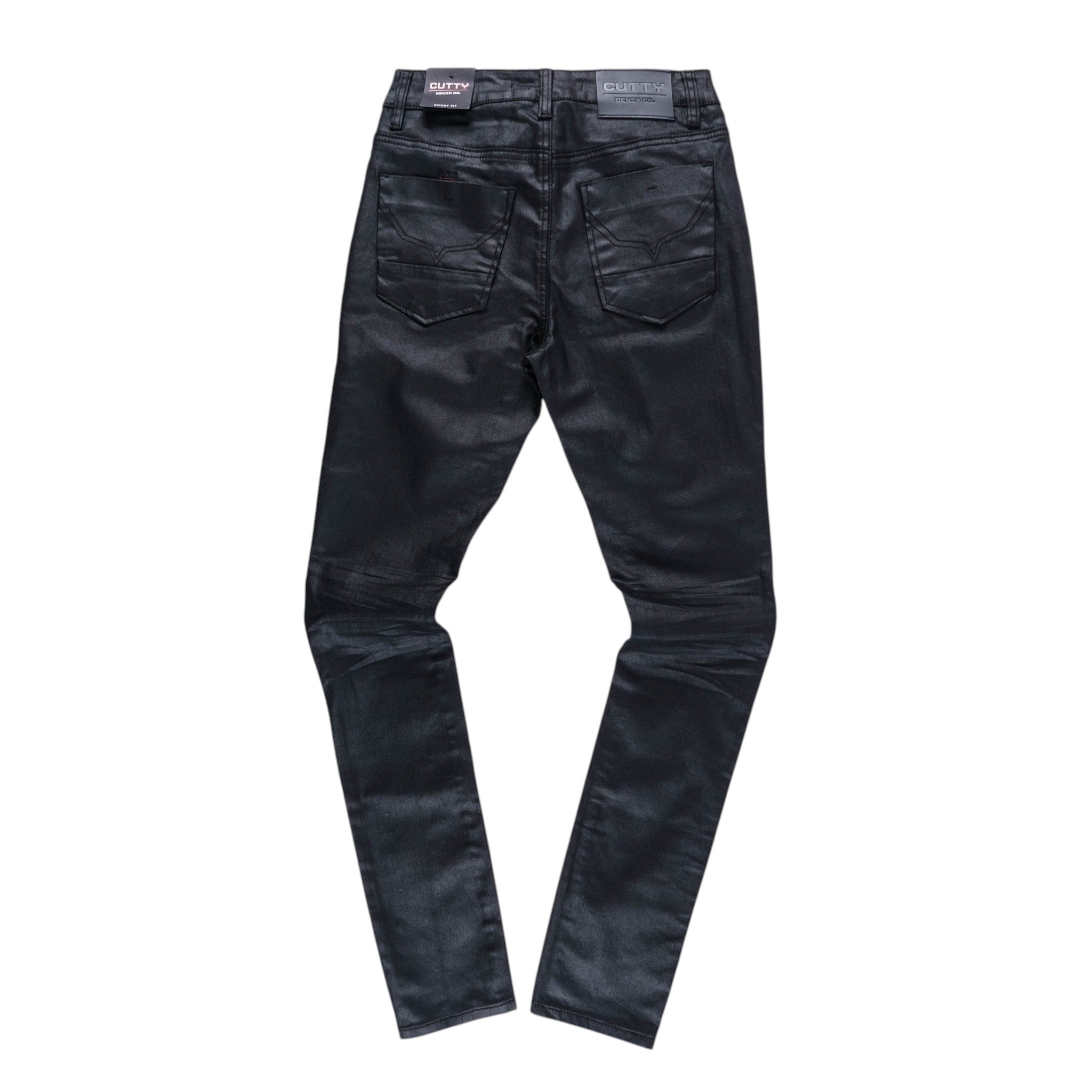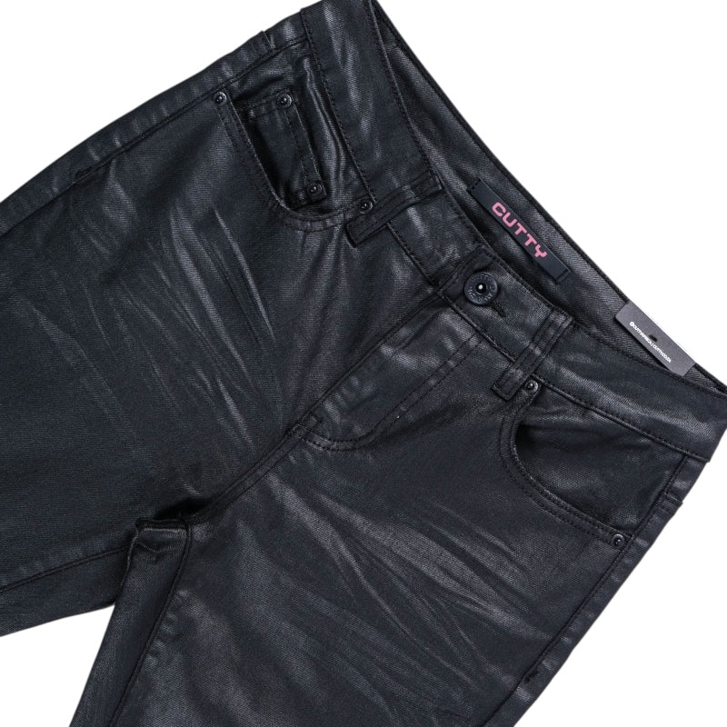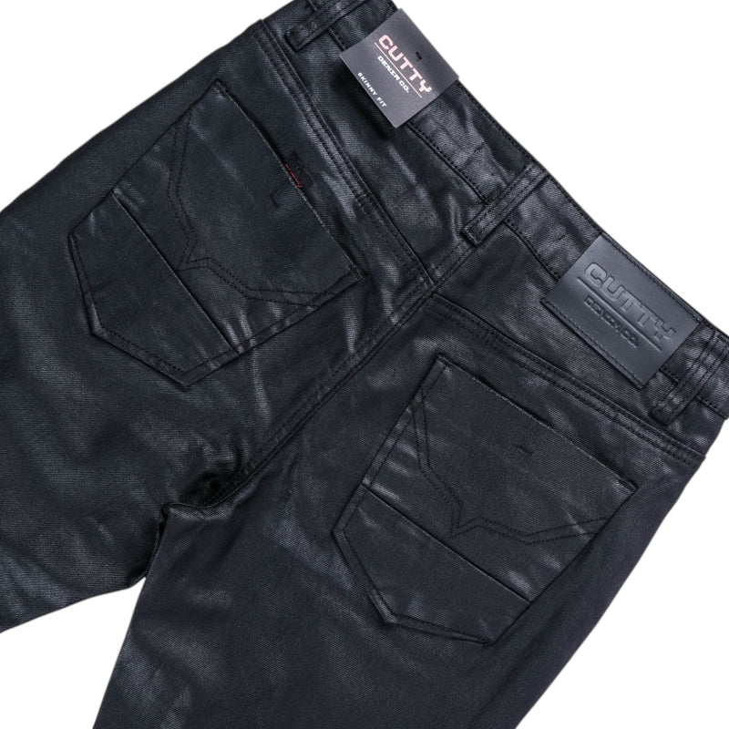Explore the CUTTY Thor Men's Black Wax Skinny Jeans designed with belt loops button fastening five functional pockets and waxed denim for a sleek skinny fit with signature Cutty brand detailing.