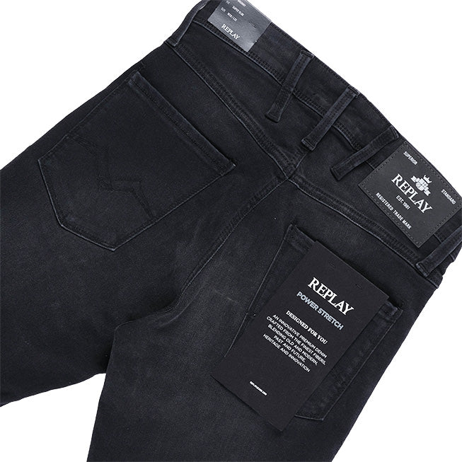 The Replay Bronny Slim Jeans feature a deep black wash with subtle fading for a refined edge. Designed with power stretch denim they deliver sleek comfort and a modern slim silhouette.