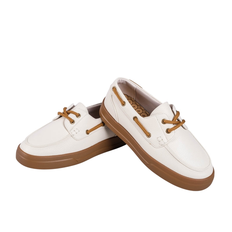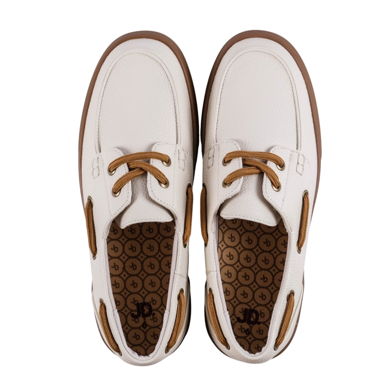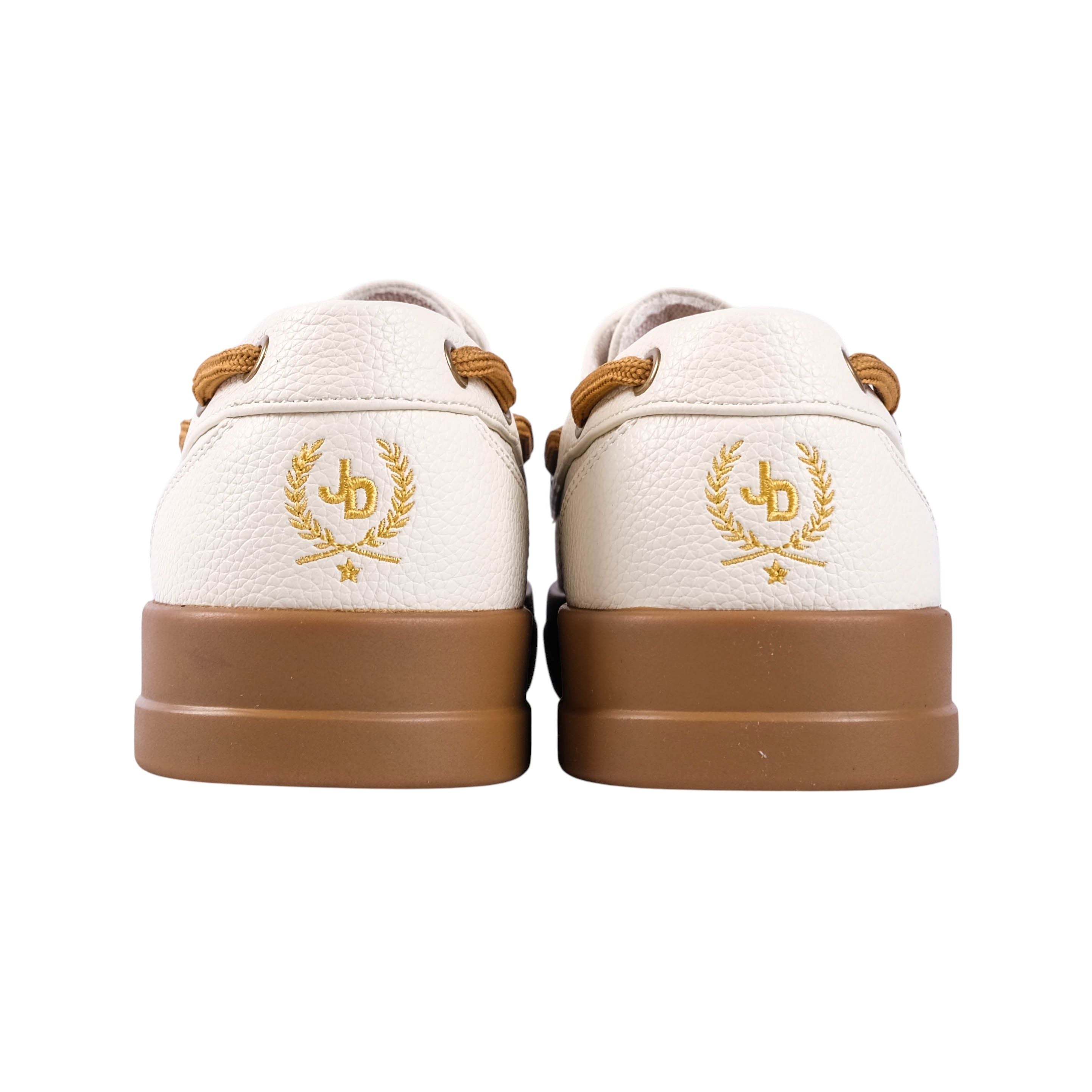 Step into refined casual style with the Jonathan D Marino Loafers crafted in textured white with bold tan laces and a statement gum sole. The sleek silhouette and cushioned inner lining deliver all day comfort with a polished street ready finish.