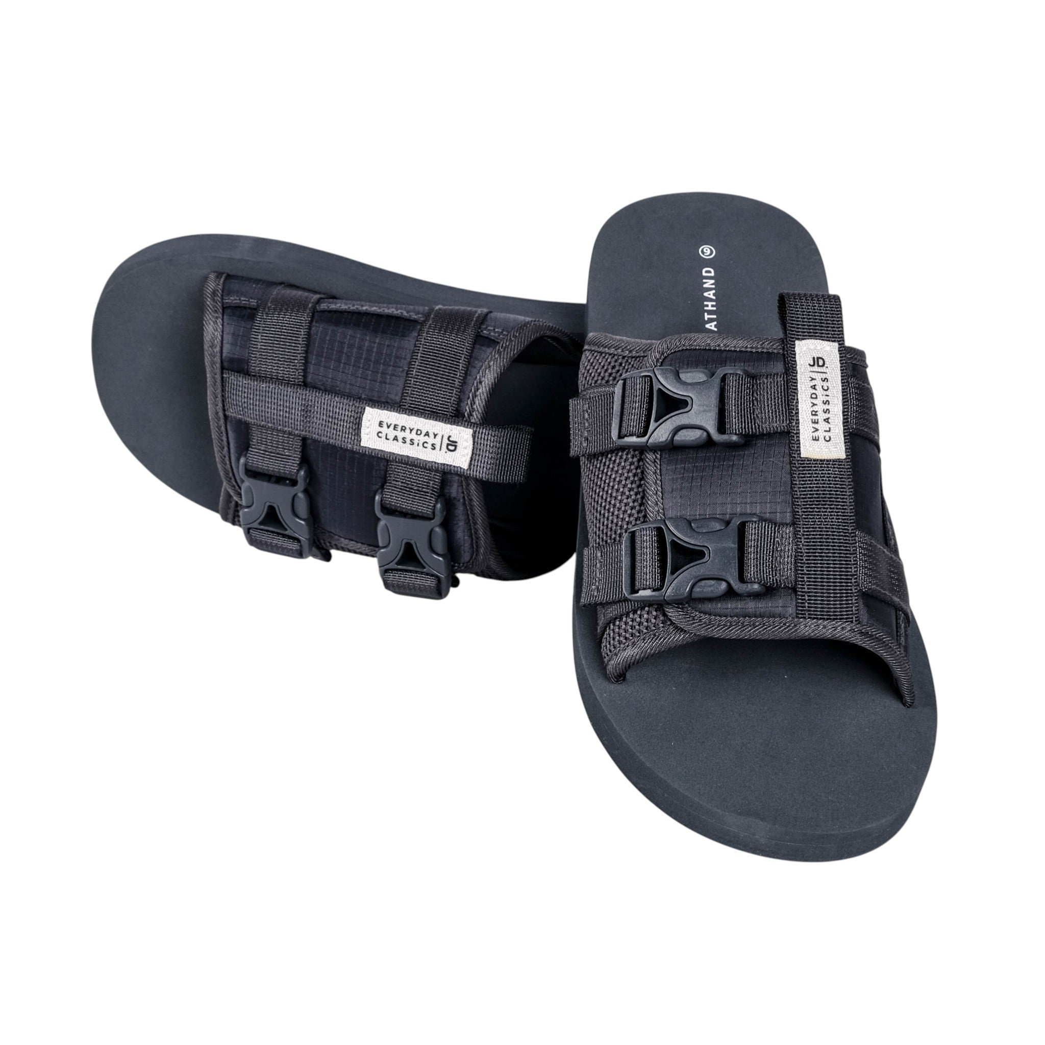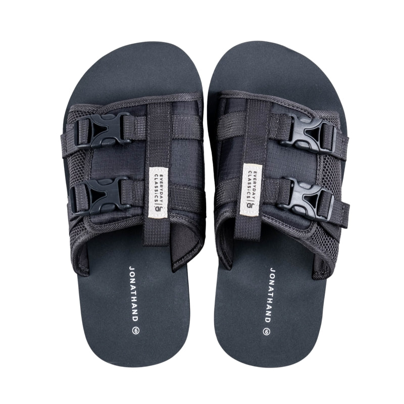 Jonathan D Jack Slides bring a clean utility look with everyday comfort built in. Designed with padded adjustable straps and a cushioned footbed for easy all day wear. A versatile black slide that pairs effortlessly with relaxed casual outfits.