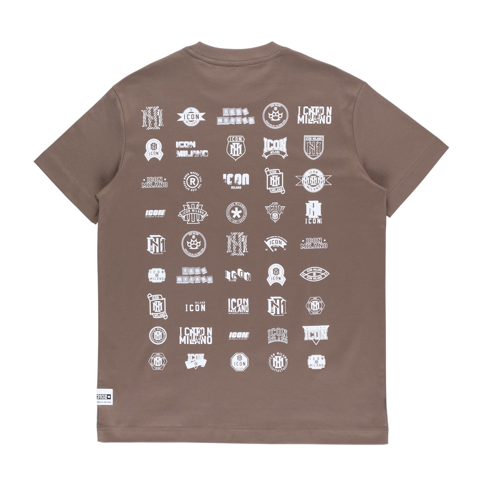 By Icon MilanoThis Icon Milano tee keeps it clean in front with a sharp minimal logo while the back delivers full impact with a grid of bold graphic emblems. It is the perfect blend of everyday simplicity and standout street energy.