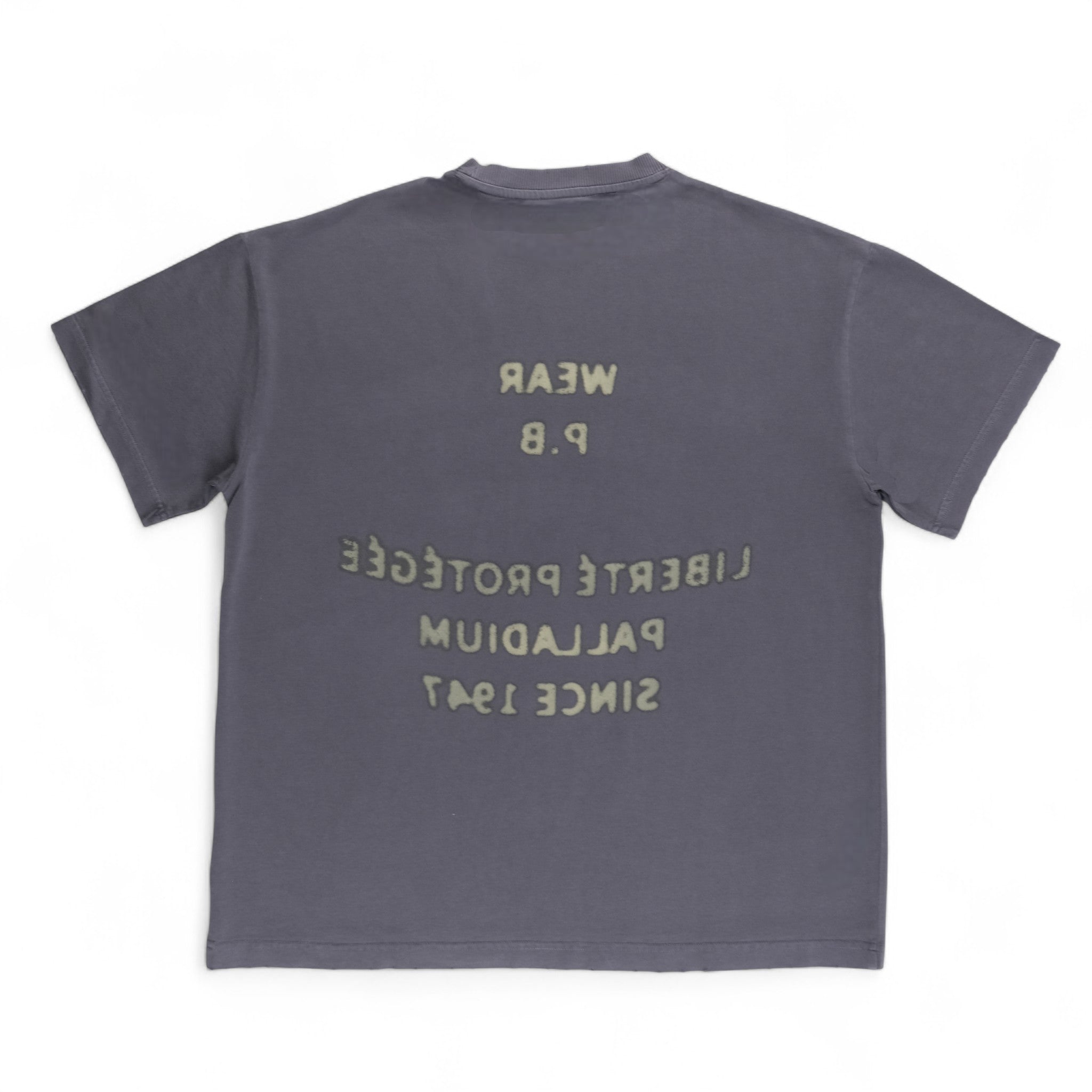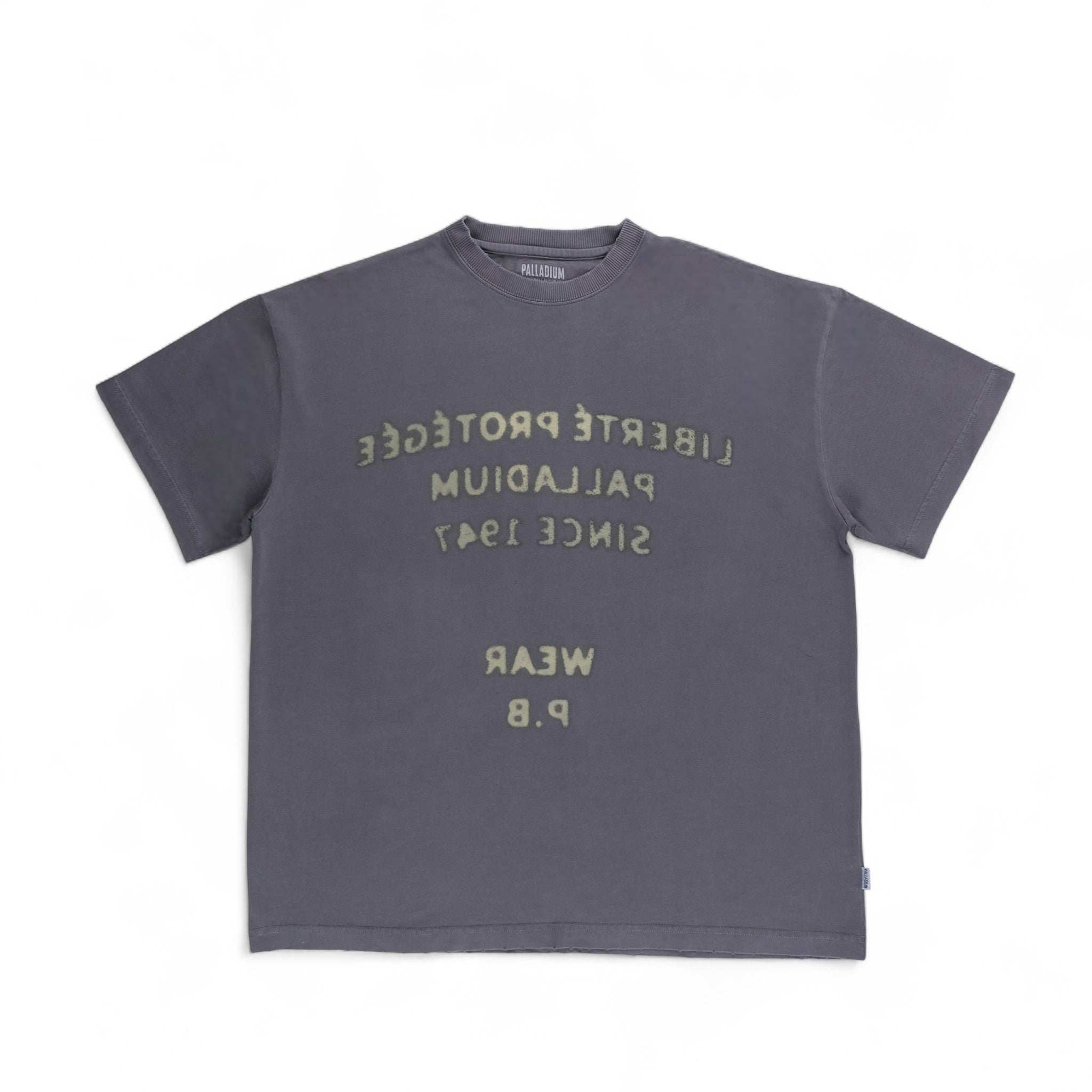 By PalladiumThe Palladium Liberte Protege Distressed T-Shirt delivers a rugged everyday look with a worn vintage finish. Its faded text print and washed charcoal tone give it an authentic streetwear edge perfect for casual layering.
