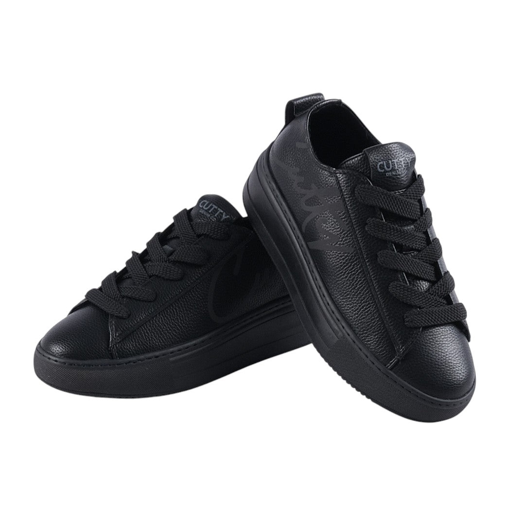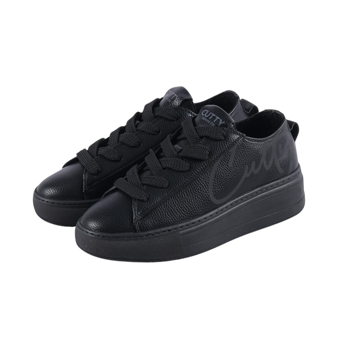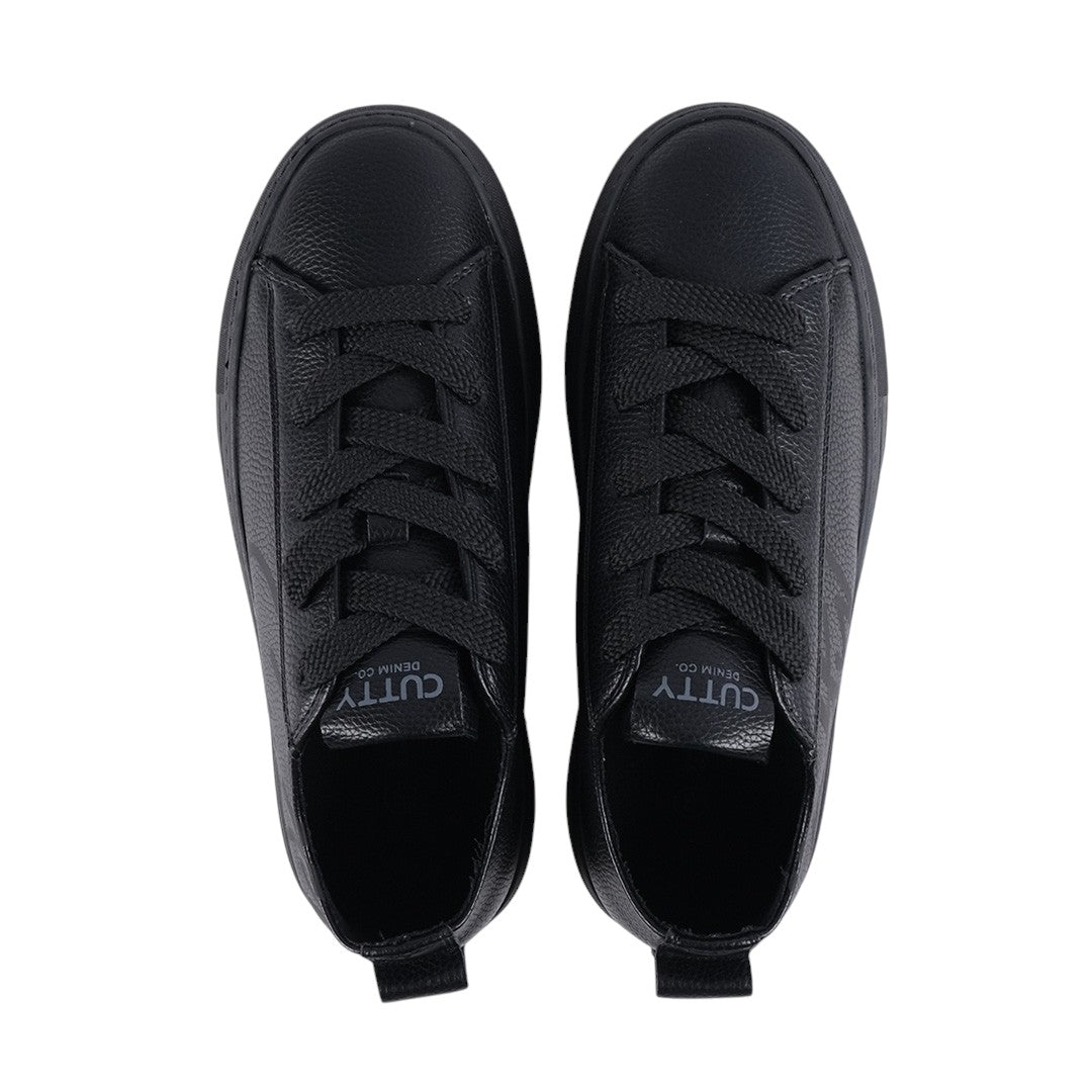 The Cutty Denim Co Tampa Low Sneakers deliver a sleek all black look with a textured leather finish for elevated street style. A raised sole adds modern attitude while offering all day comfort and support. Perfect for versatile wear from casual days to after dark looks.