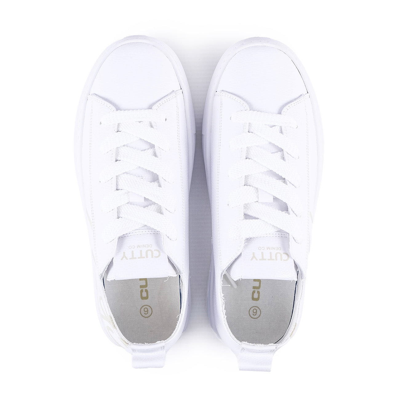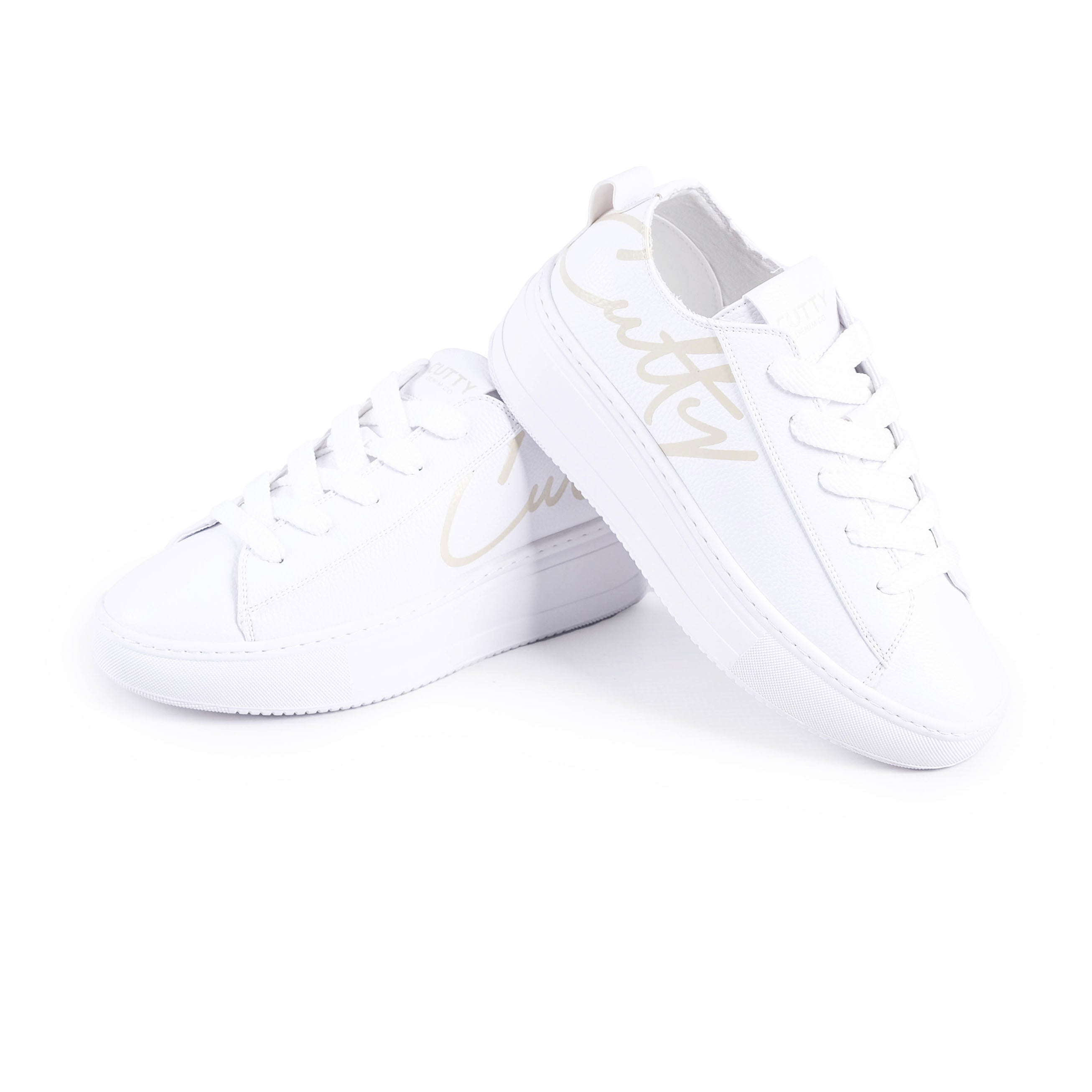 The Cutty Tampa Low Sneakers feature a clean all white design with bold side branding for a modern statement look. Their platform sole adds height and comfort making them perfect for everyday wear.