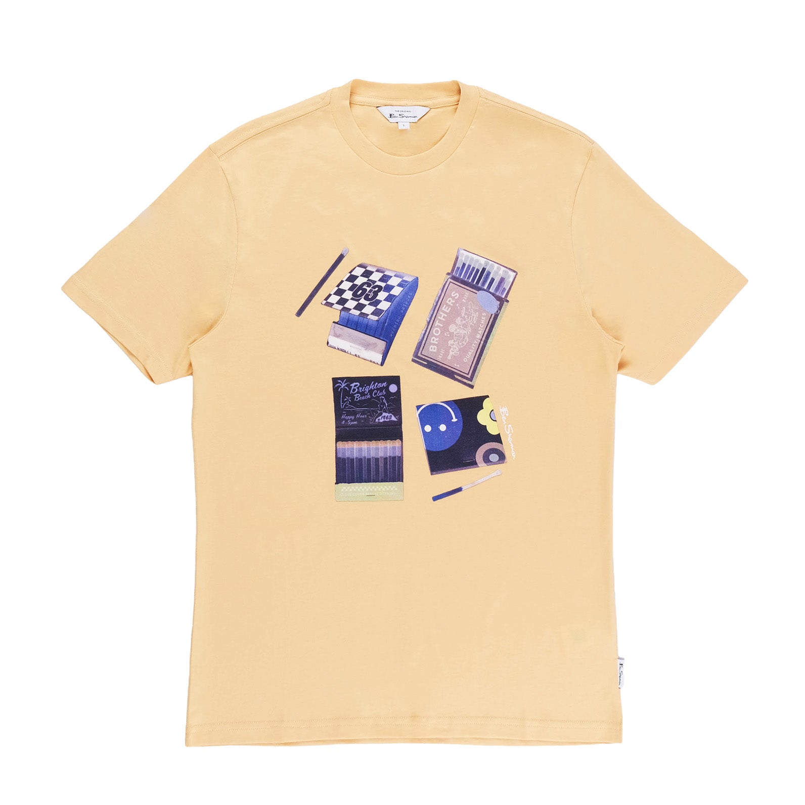 By Ben ShermanThe Ben Sherman Match Box Crew T-Shirt comes in a warm wheat tone with a playful graphic of vintage matchboxes for a retro inspired look. Its soft cotton fabric and casual fit make it a standout piece for everyday streetwear.