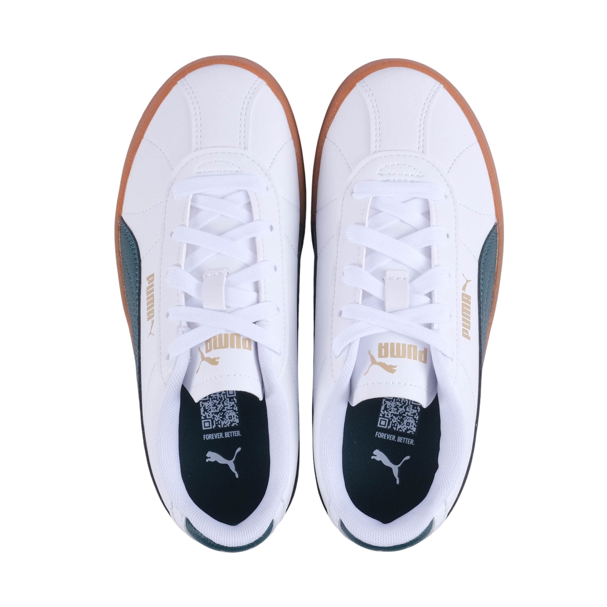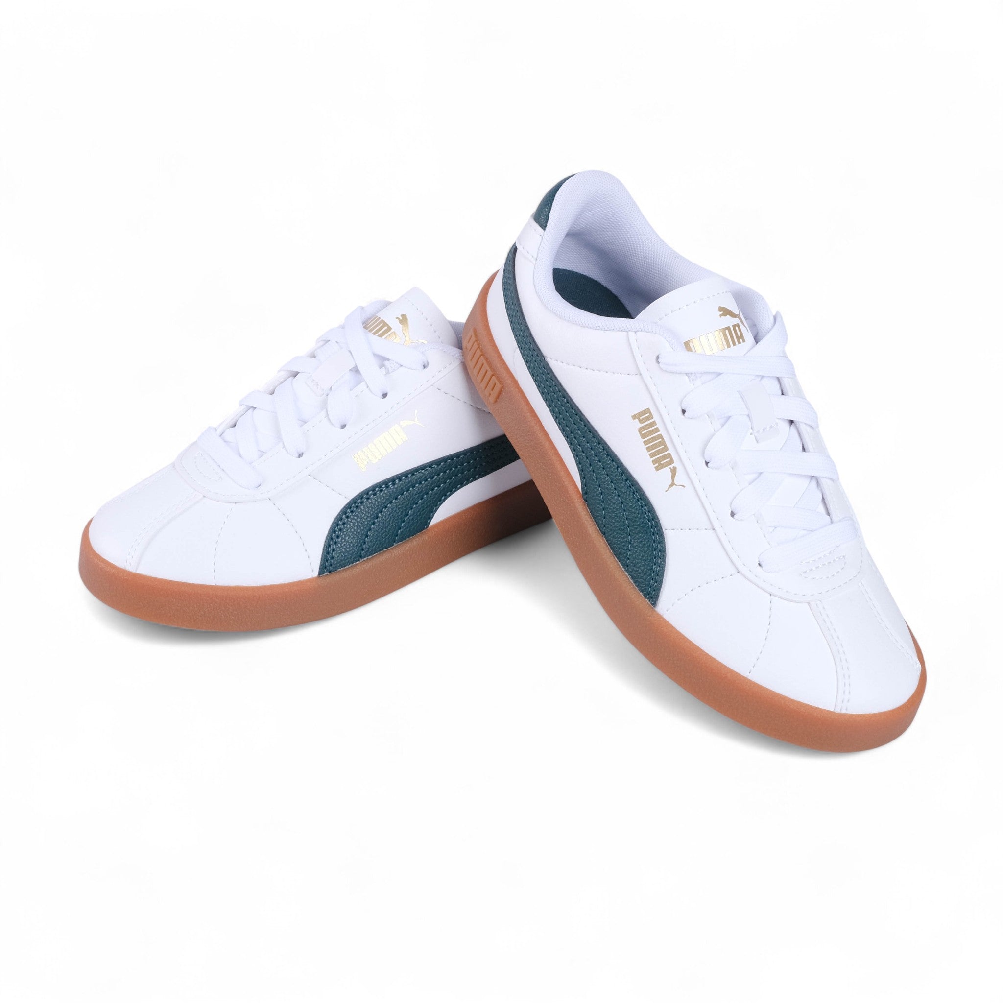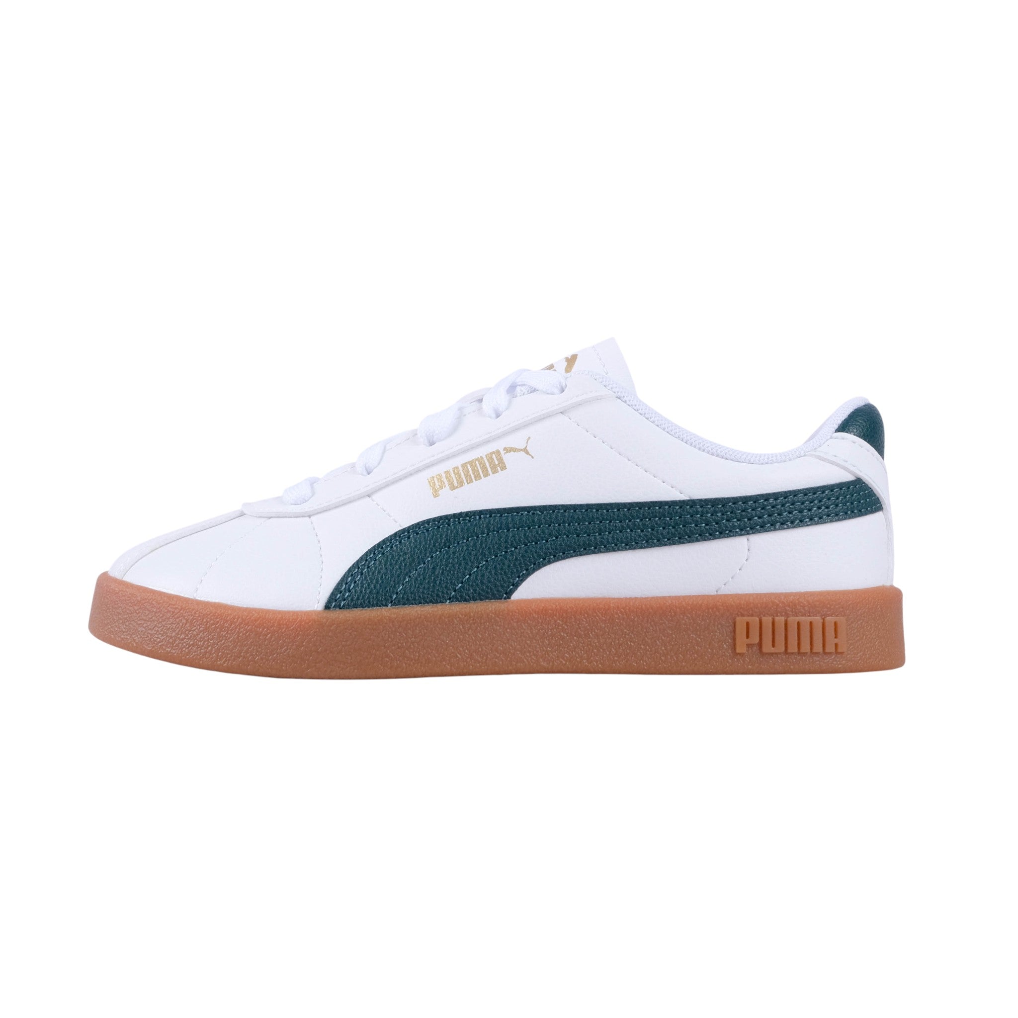 The Puma Club II Kids Sneakers bring classic street style with a modern edge. Featuring a clean white upper green side stripe and gum sole they deliver comfort and timeless cool for everyday wear.