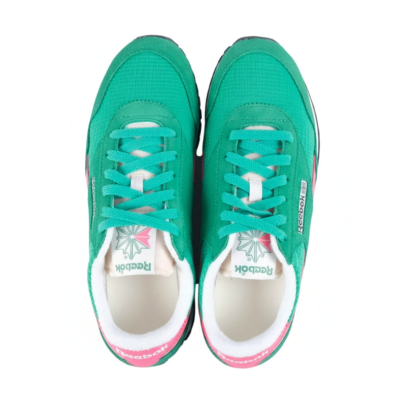 The Reebok Classic AZ Sneakers add a playful twist to vintage style with a bold green upper and striking pink accents. Their lightweight design and cushioned sole make them perfect for all day wear with standout flair.