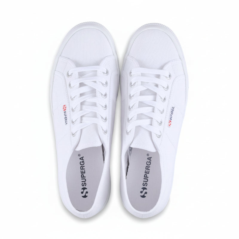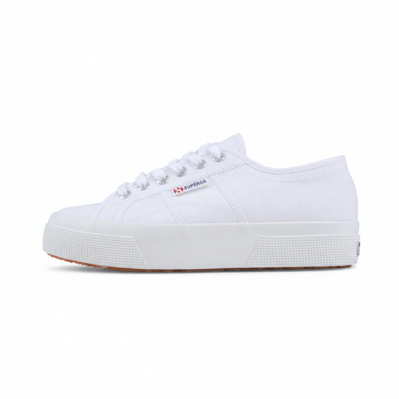 The Superga 274 Platform Sneakers feature a timeless all white canvas design that pairs effortlessly with any outfit. Their platform sole adds a subtle lift while keeping the look clean classic and versatile for everyday wear.