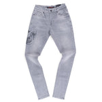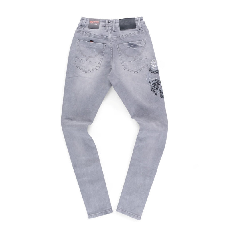 The Cutty Denim Co Bobby Skinny Jeans feature a sleek grey wash with a bold skull graphic that adds edge to any fit. Crafted for a sharp skinny silhouette these jeans blend attitude and comfort for standout streetwear style.