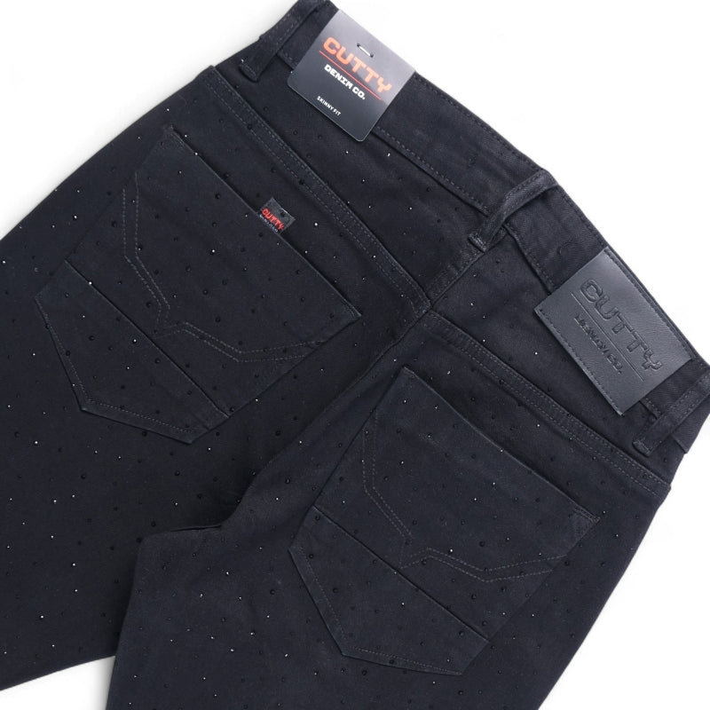 The Cutty Denim Co Antonio Skinny Jeans bring a sleek modern twist with subtle stud detailing across a deep black finish. Their slim fit design delivers a sharp confident look perfect for standout streetwear style.