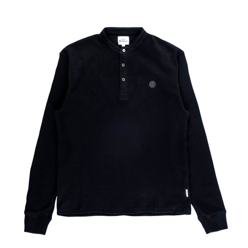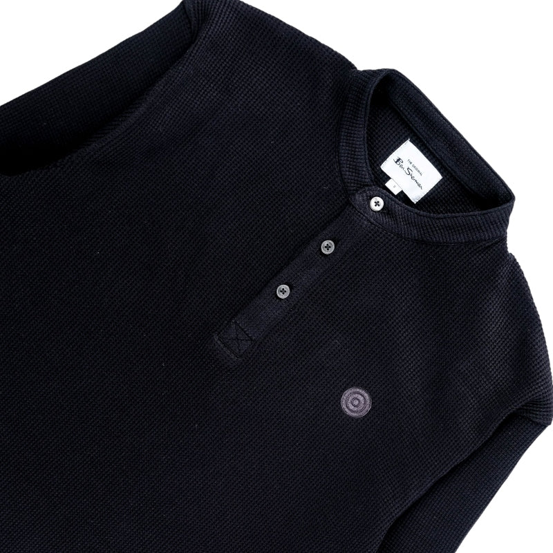 The Ben Sherman Henley Waffle Crew Sweater delivers textured style with a refined edge. Crafted in a deep navy waffle knit with a buttoned henley neckline it offers a modern take on a classic silhouette. Finished with subtle chest branding this piece is built for effortless everyday layering.