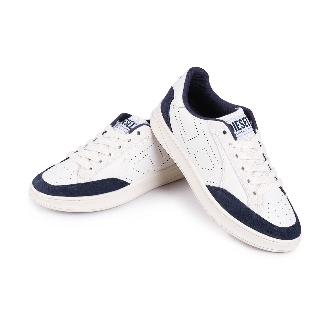 The Diesel S-Dakota Low Sneakers feature a clean retro design with navy suede panels and perforated detailing. Their smooth leather upper and cushioned sole deliver classic comfort with timeless Diesel attitude.