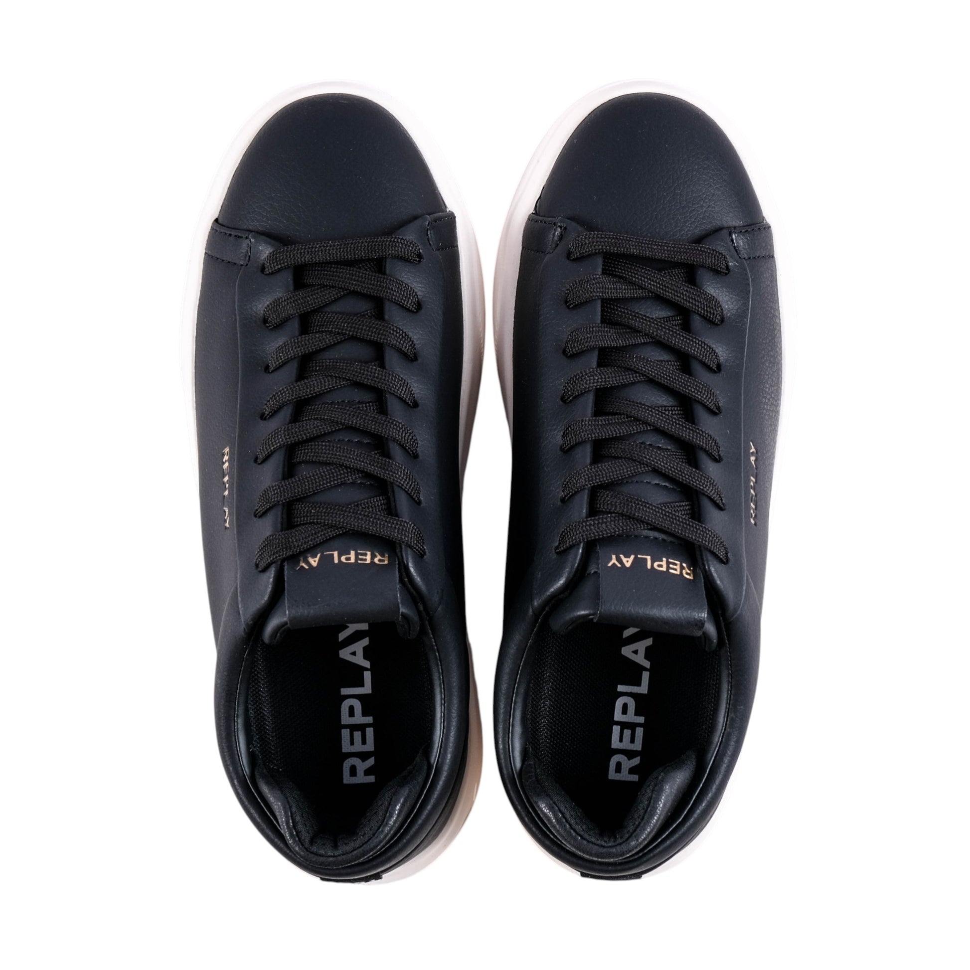 Replay Notting Double Sneakers deliver sleek street style with a smooth leather look upper and subtle Replay branding. Contrast white sole adds a bold modern edge. Lightweight sole provides everyday comfort and grip.