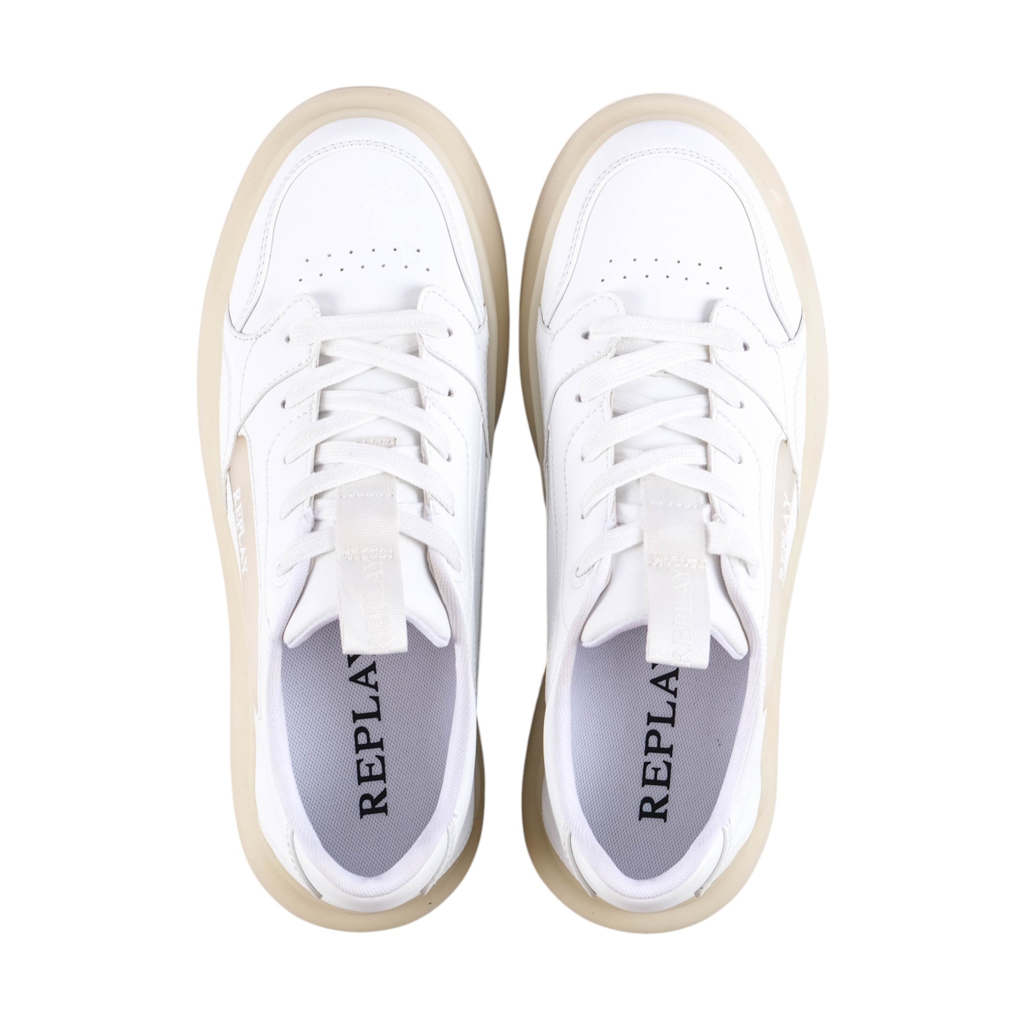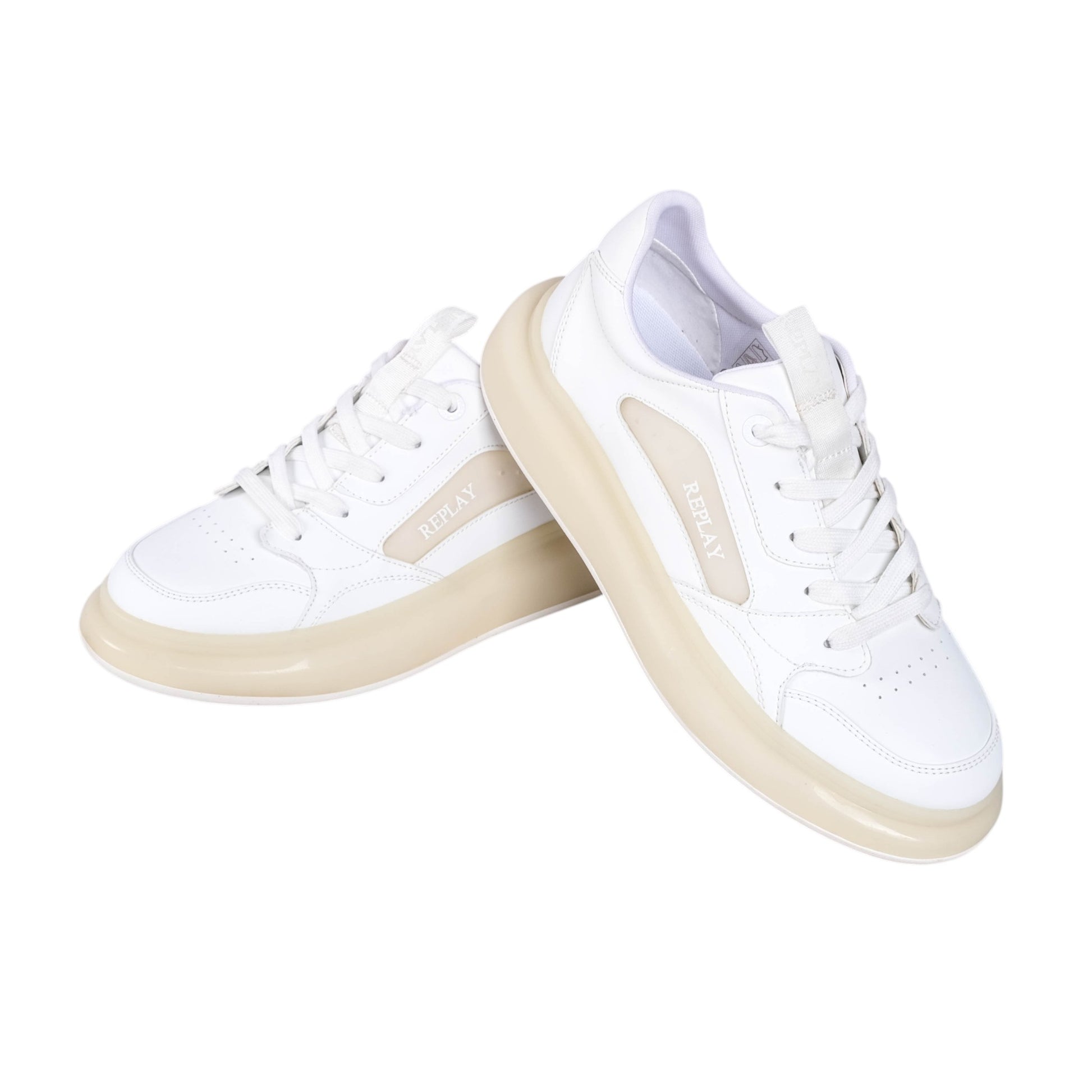 Replay Glax Clear Sneakers deliver clean street style with a smooth white upper and translucent side panel branding. Chunky clear tone sole adds a bold modern edge. Lightweight design provides everyday comfort and effortless wear.